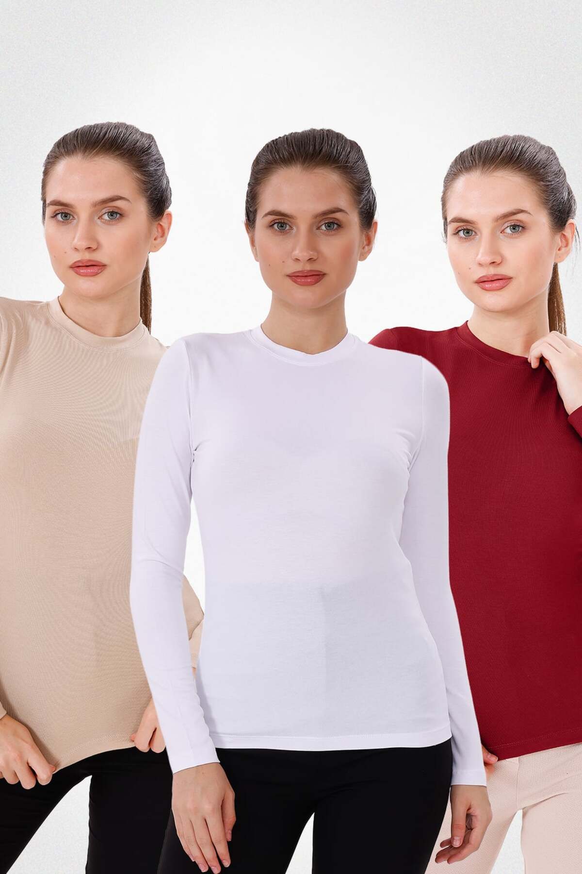 Kadın Uzun Kollu Bisiklet Yaka Body 3’lü Set – Siyah Ekru Beyaz Kadın Uzun Kollu Bisiklet Yaka Body 3’lü Set – Siyah Ekru Beyaz YD202X3 2XL