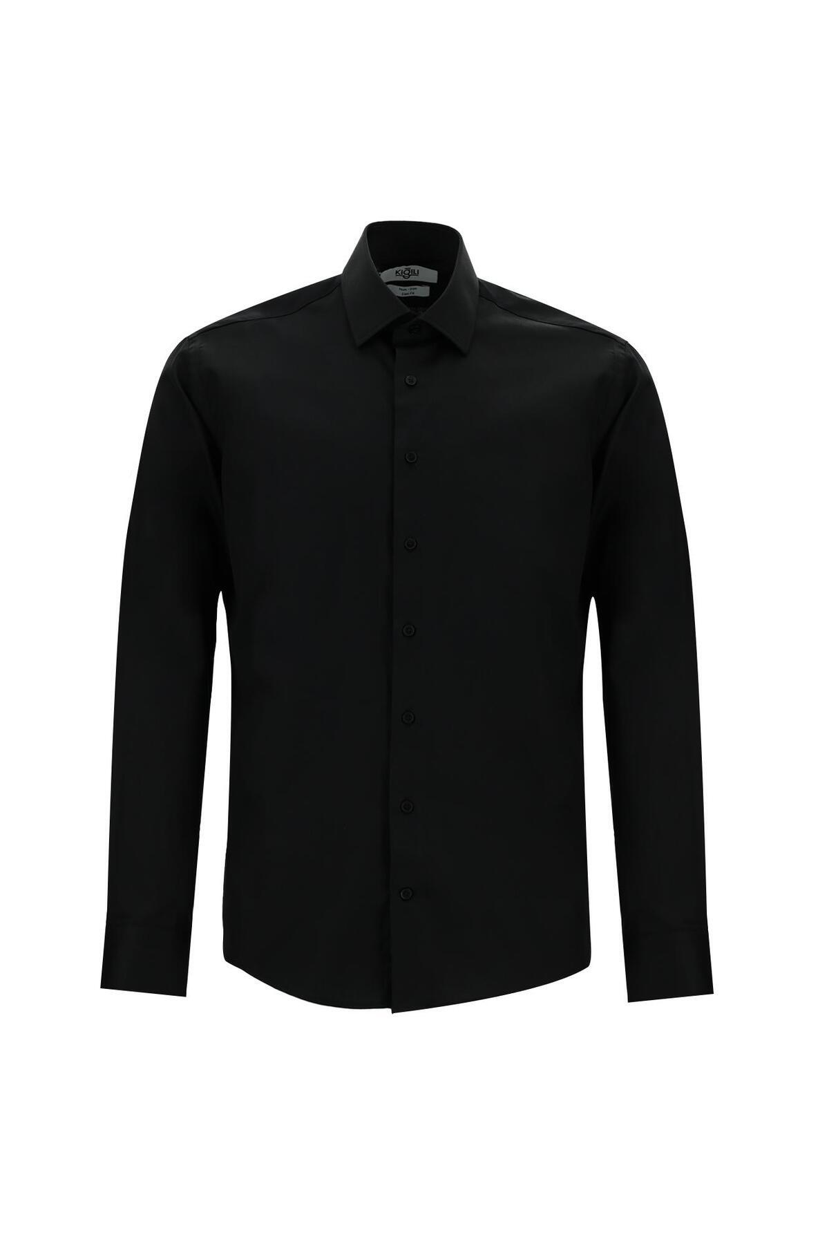 Siyah Düz Renk Uzun Kol Slim Fit Erkek Gömlek Siyah Düz Renk Uzun Kol Slim Fit Erkek Gömlek DU1999011048 46
