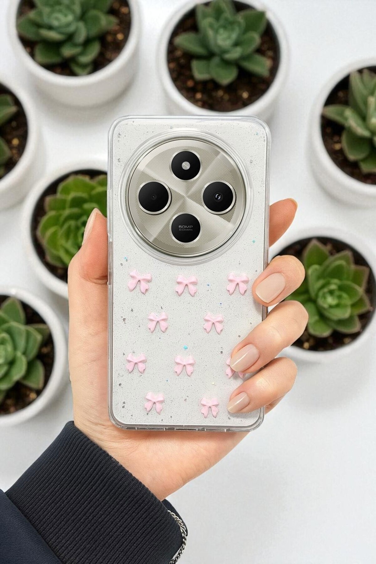 Xiaomi Redmi 14C Uyumlu Pembe Fiyonk Desenli Şeffaf Yumuşak Silikon Kılıf Xiaomi Redmi 14C Uyumlu Pembe Fiyonk Desenli Şeffaf Yumuşak Silikon Kılıf Redmi14c تک سایز