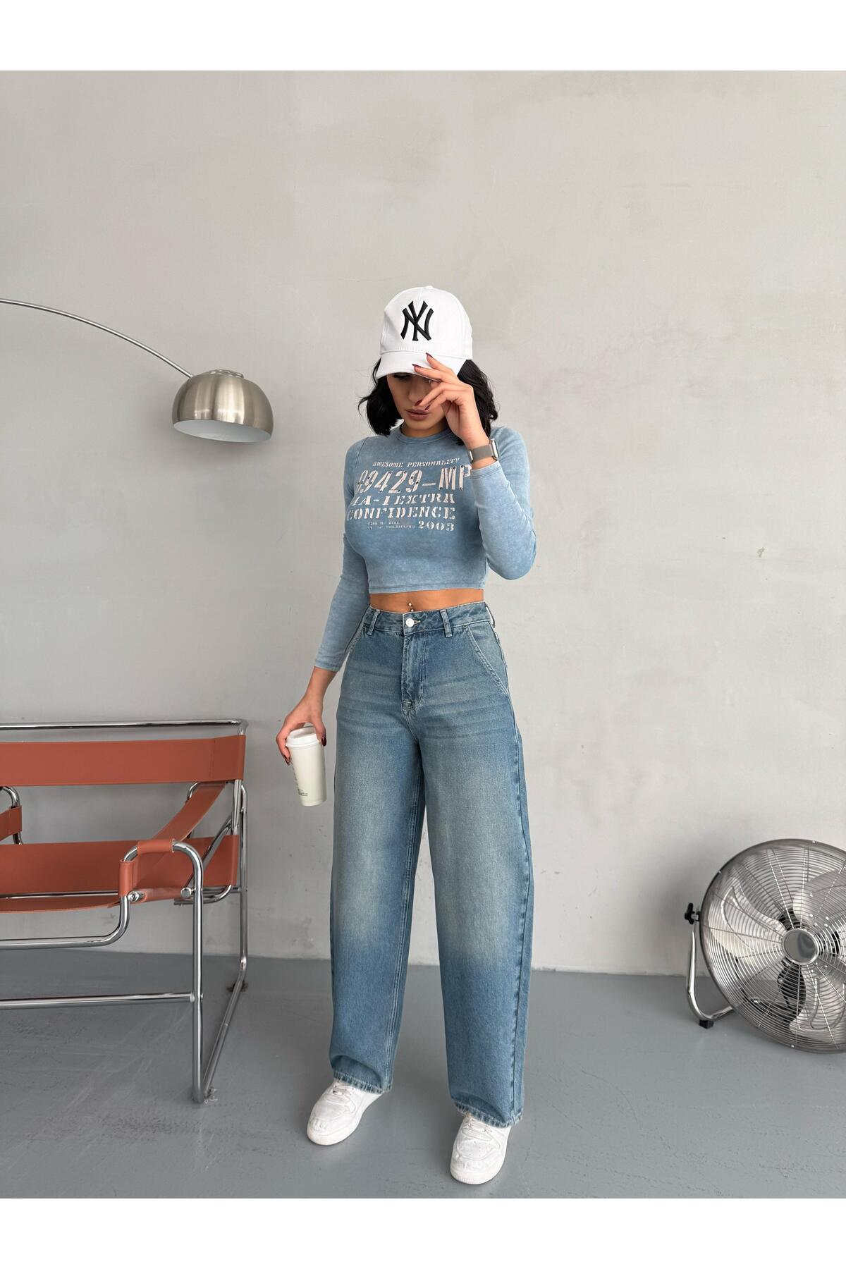 Kadın skater fit detaylı yüksek bel kot pantolon Kadın skater fit detaylı yüksek bel kot pantolon 5010- 42