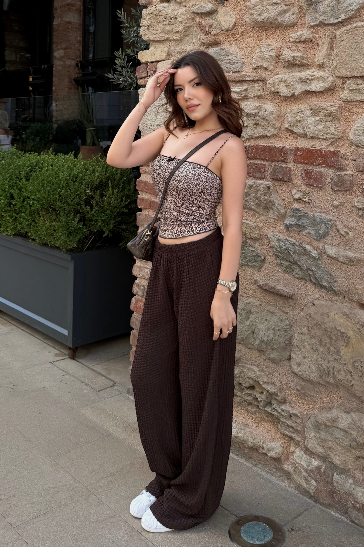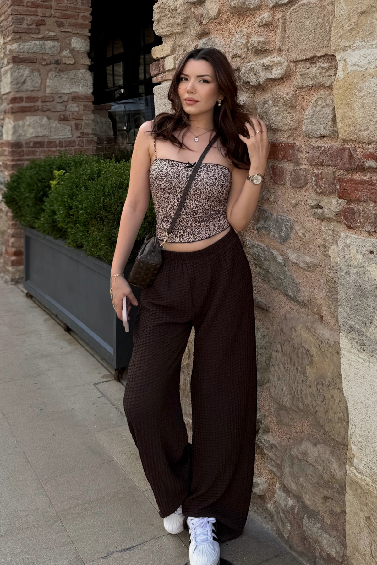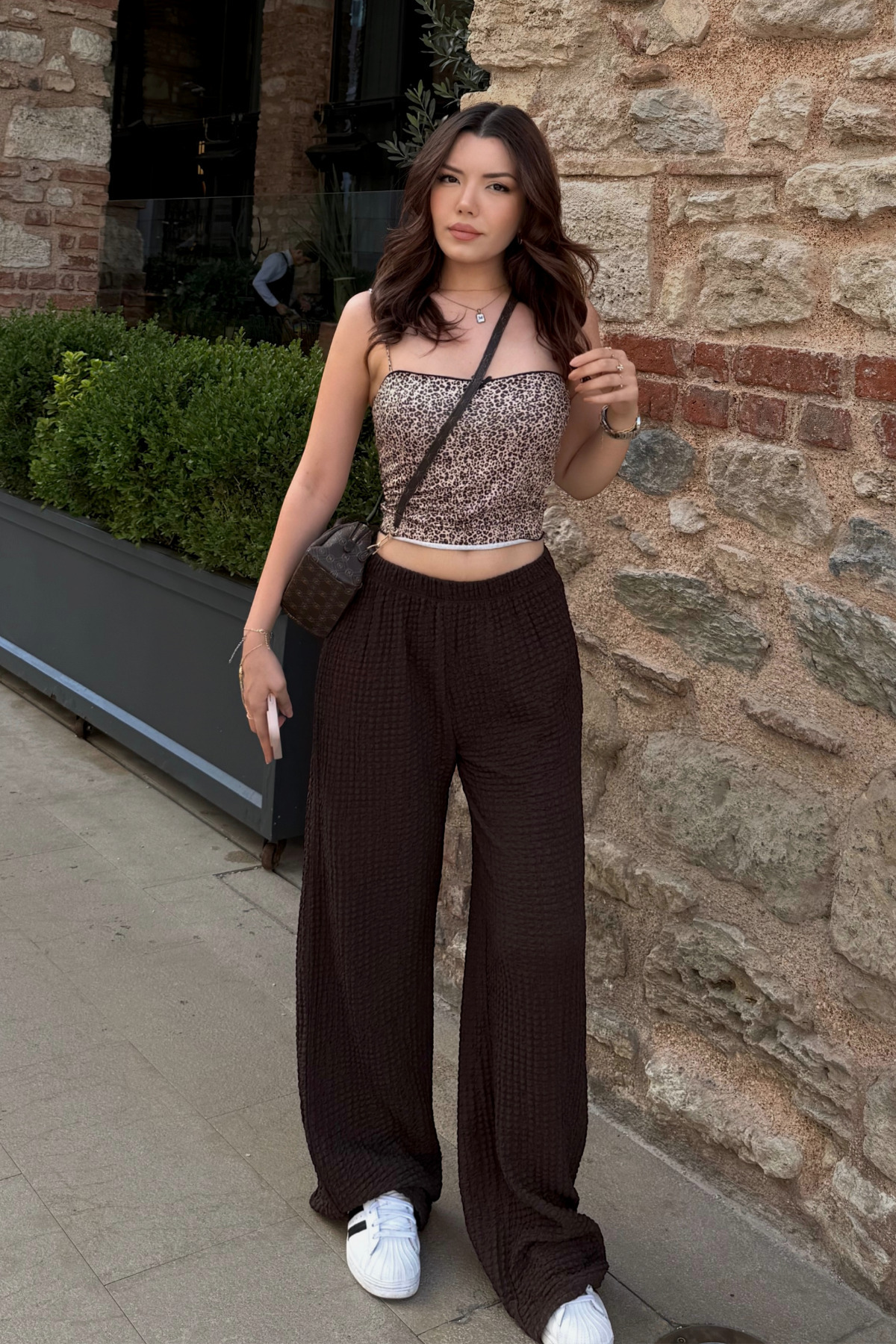 Kadın Acı Kahve Yüksek Bel Likralı Dökümlü Relax Bubble Pantolon Kadın Acı Kahve Yüksek Bel Likralı Dökümlü Relax Bubble Pantolon Buble01 L