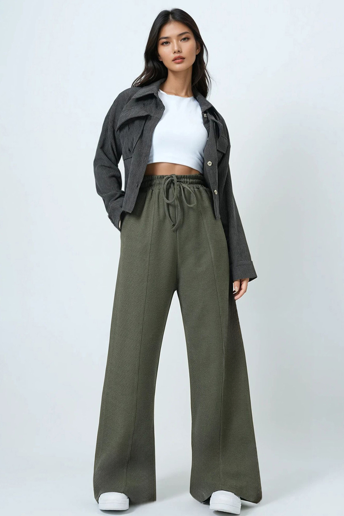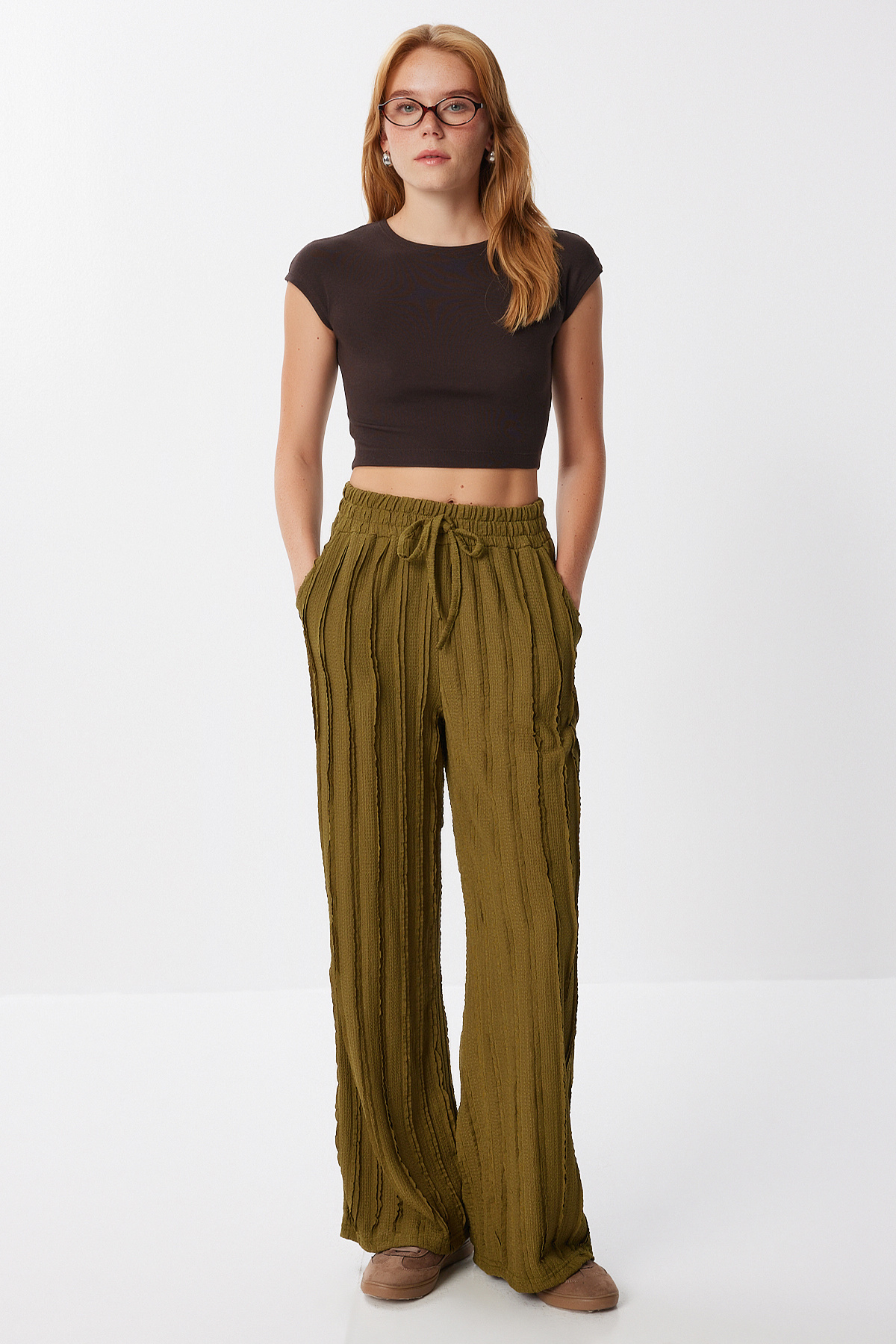 Kadın Haki Dokulu Cepli Esnek Örme Pantolon ZV00345 Kadın Haki Dokulu Cepli Esnek Örme Pantolon ZV00345 42