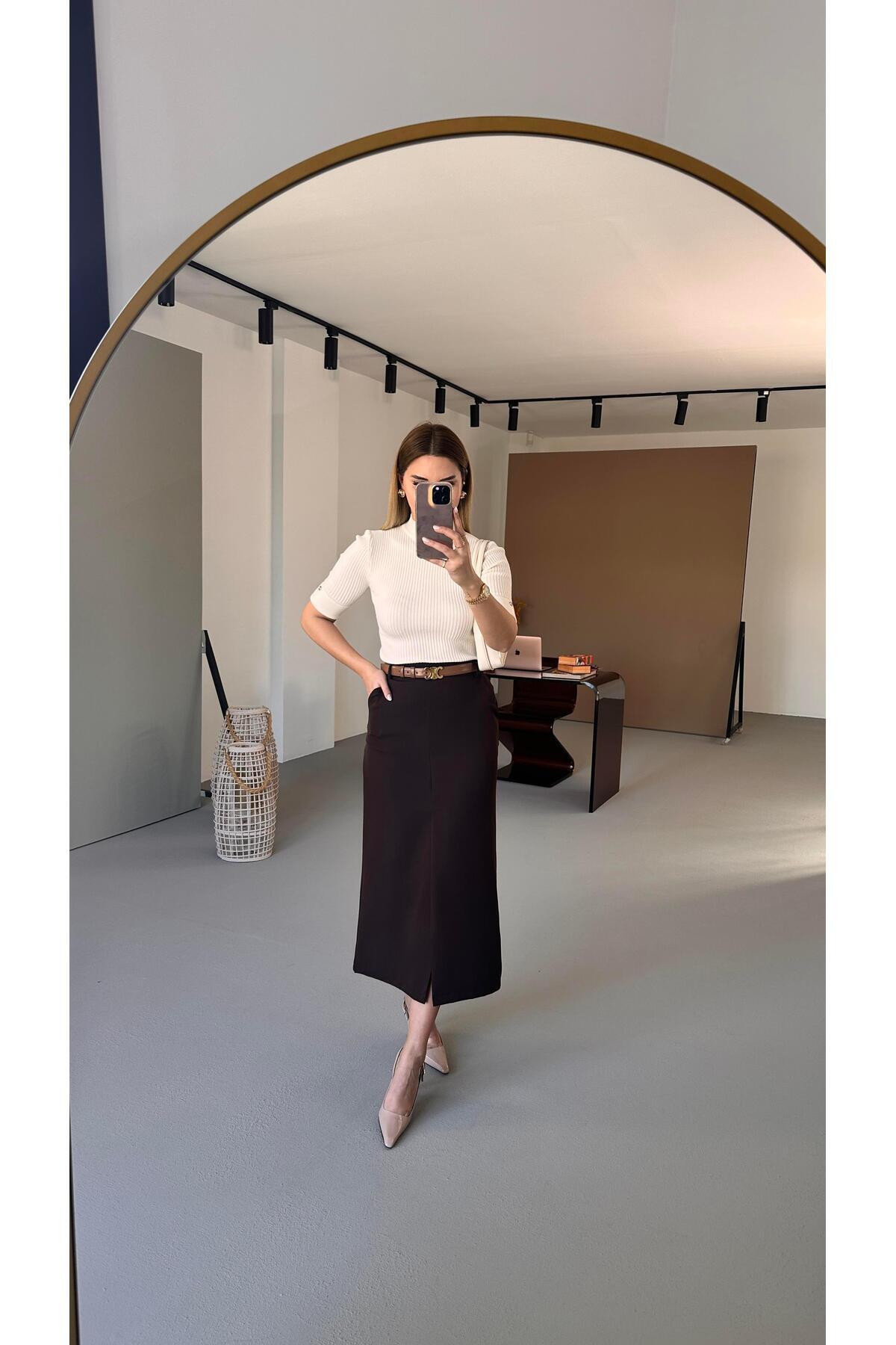 Bel Lastikli Kırışık Doku Saten Midi Vizon Etek Bel Lastikli Kırışık Doku Saten Midi Vizon Etek ETK-0229-VZN L
