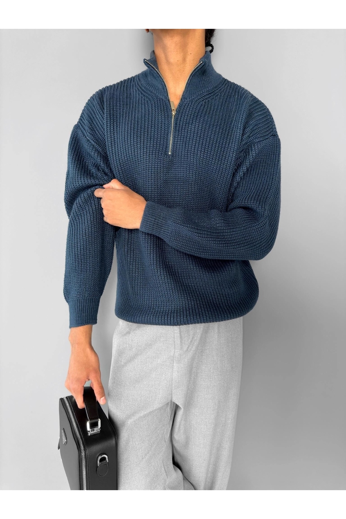 ERKEK HAVACI KISA FERMUARLI DİK YAKA SELANİK ÖRGÜ YÜN KAZAK TRIST-5358 ERKEK HAVACI KISA FERMUARLI DİK YAKA SELANİK ÖRGÜ YÜN KAZAK TRIST-5358 2XL