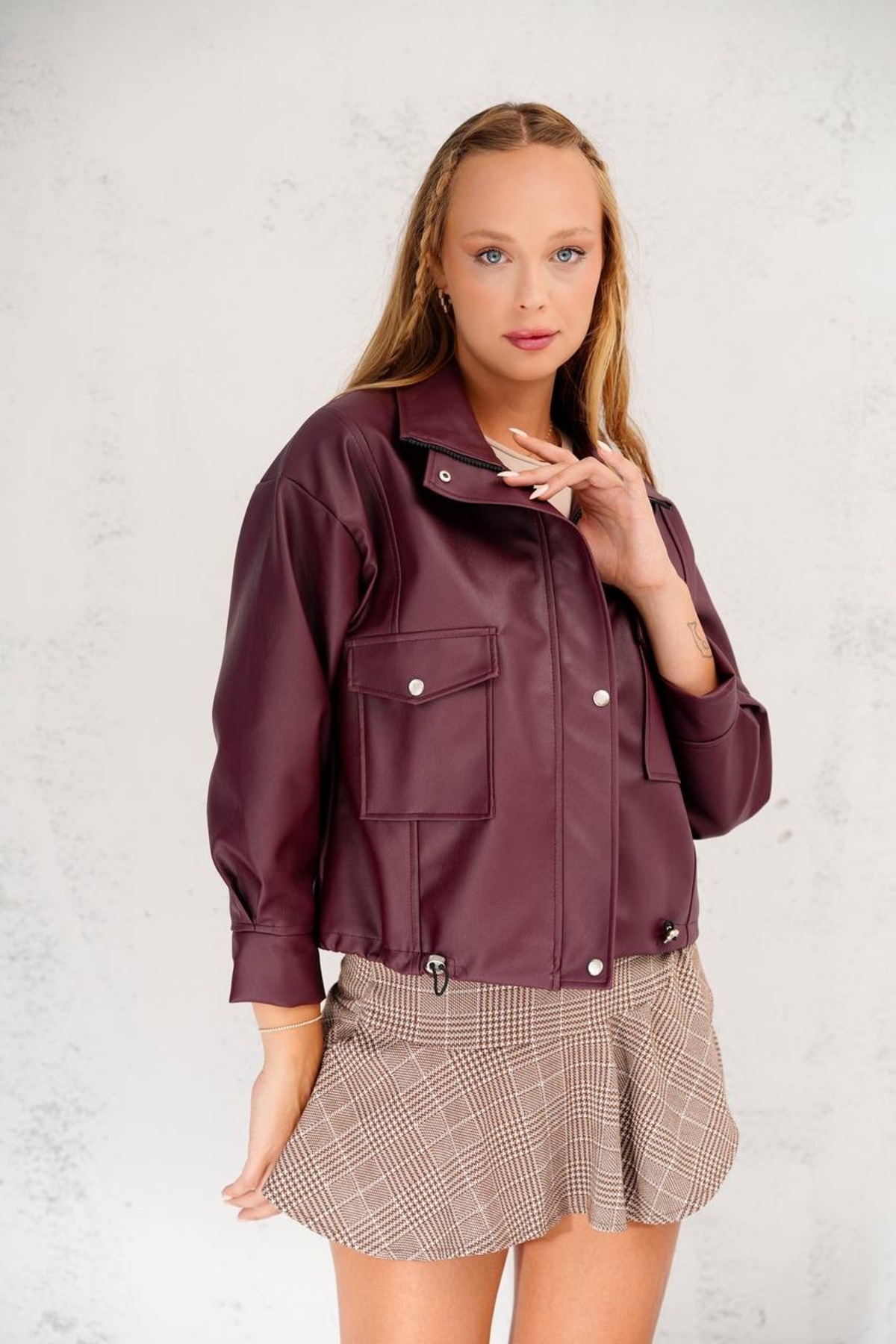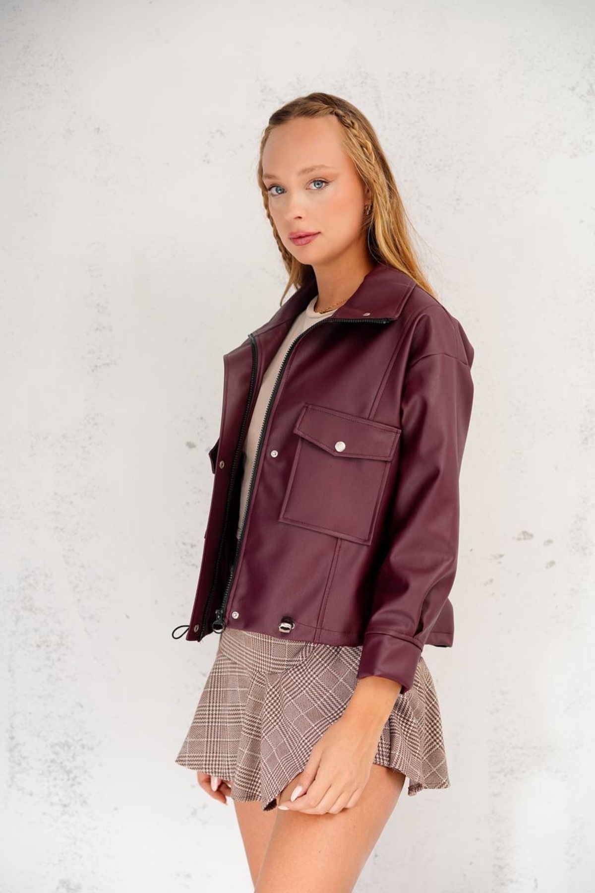 Oversize Düğmeli Cepli Bordo Kadın Fermuarlı Deri Ceket Oversize Düğmeli Cepli Bordo Kadın Fermuarlı Deri Ceket Ckt2000 L