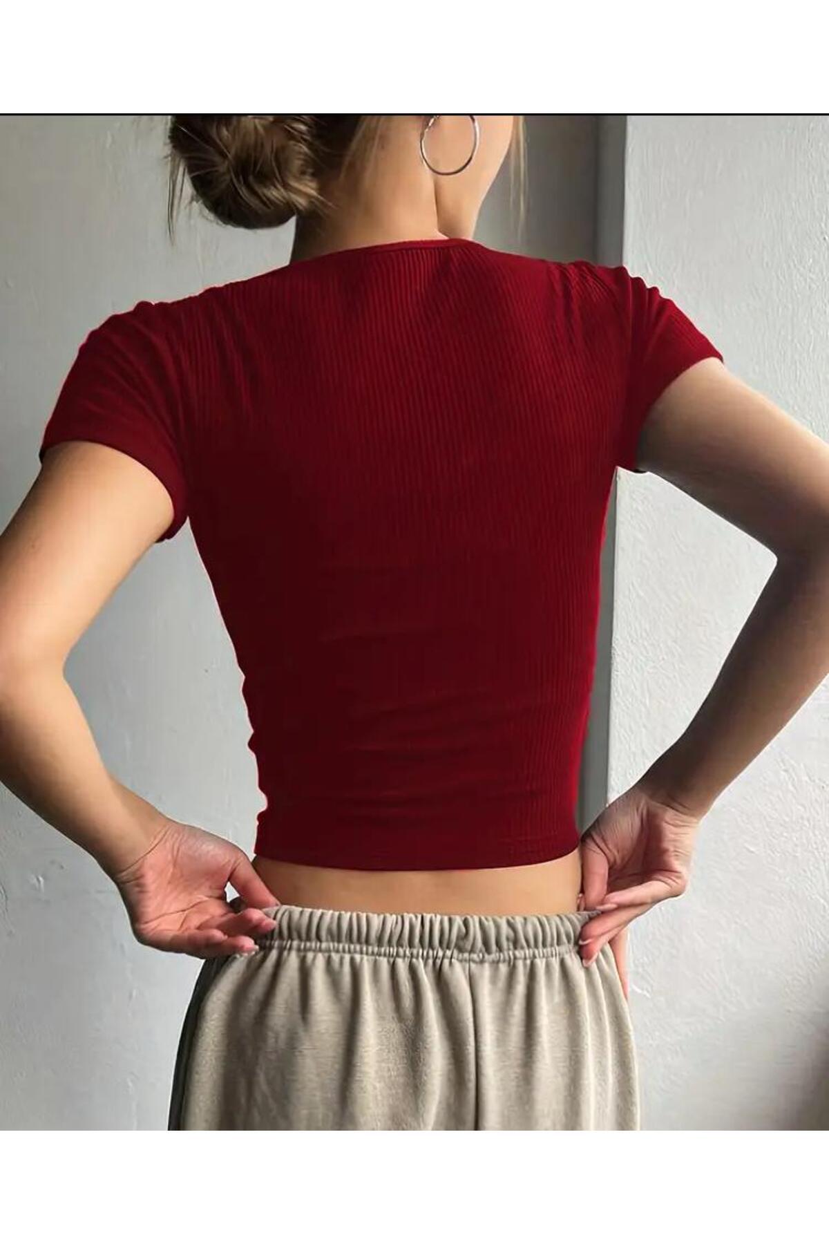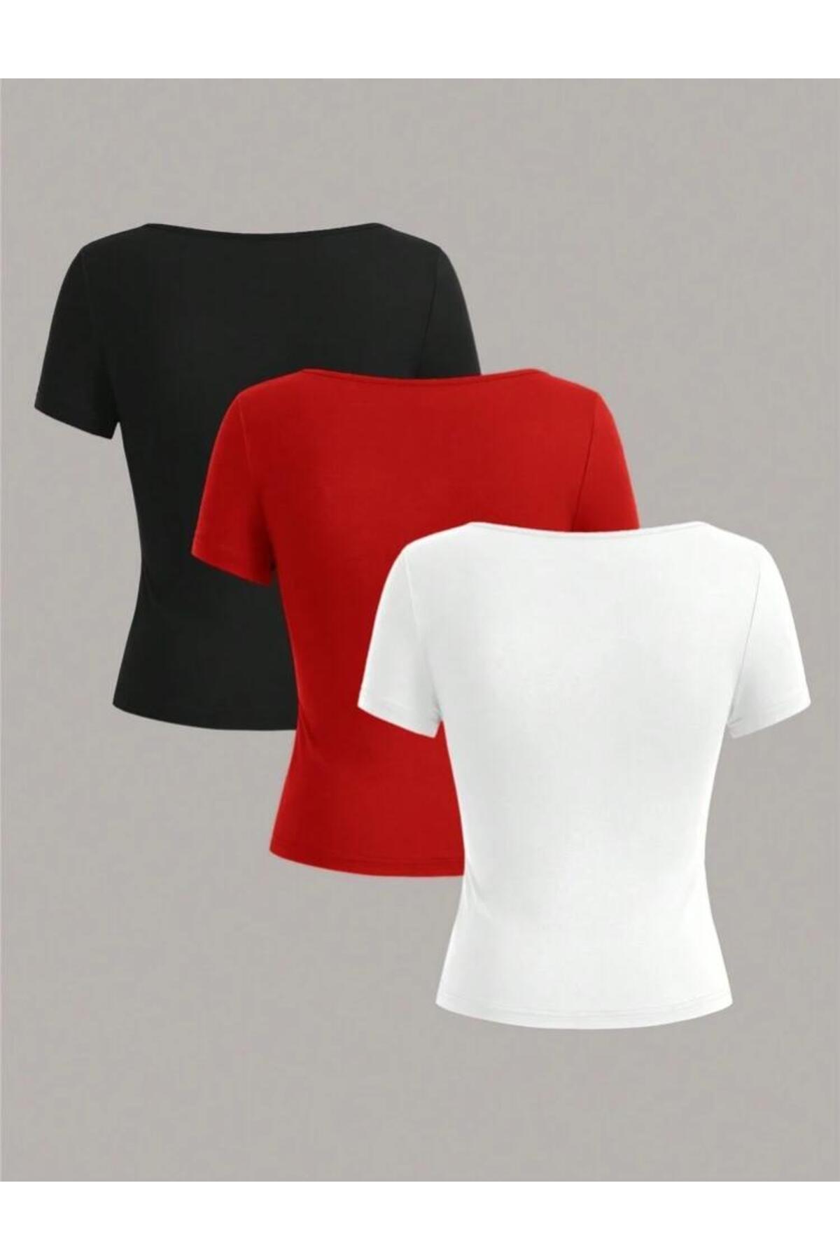Kadın 3'lü paket fitilli kaşkorse vücudu saran KARE YAKA CROP T-SHİRT Kadın 3'lü paket fitilli kaşkorse vücudu saran KARE YAKA CROP T-SHİRT 1011 L