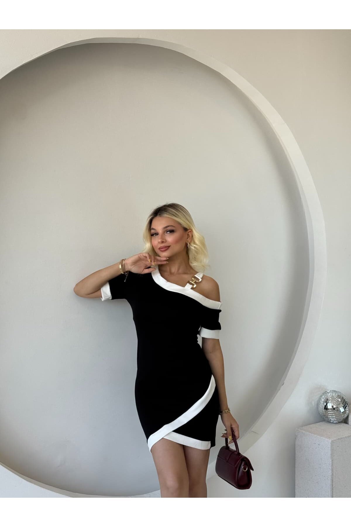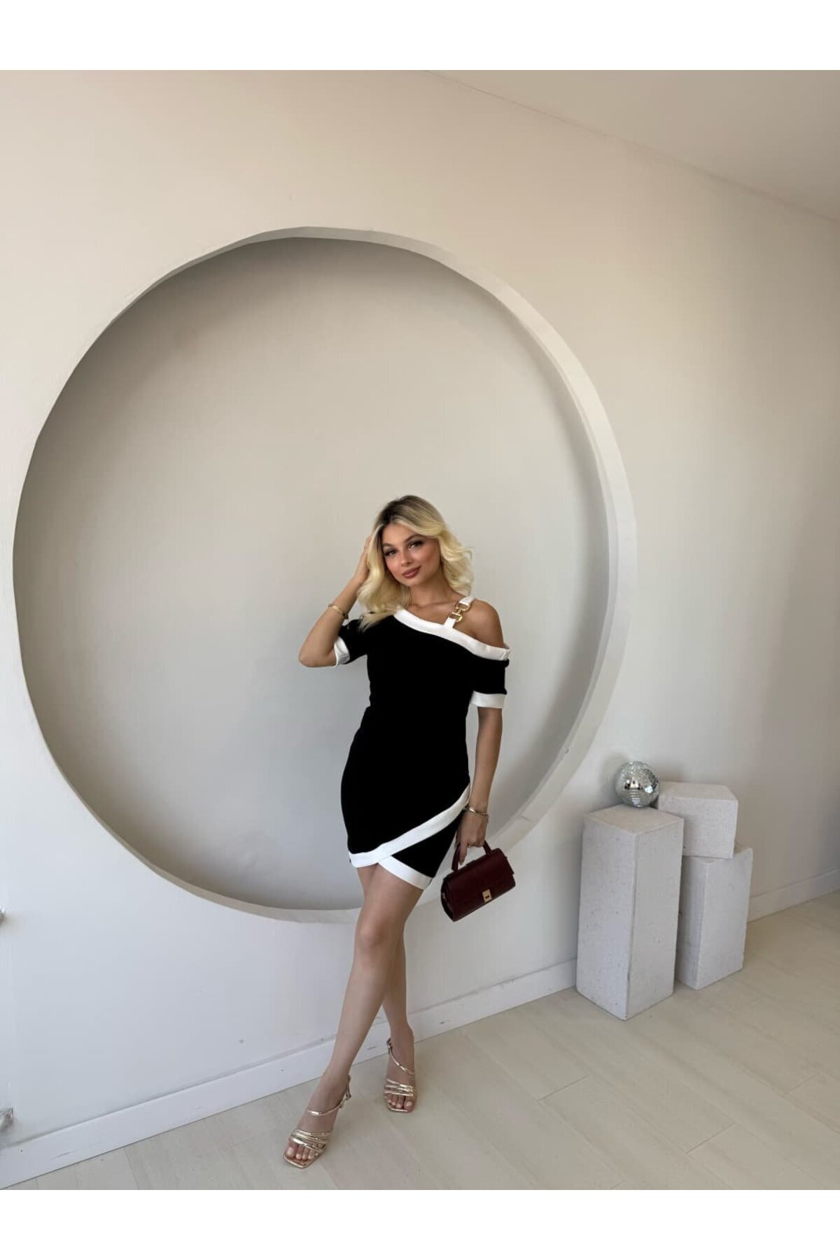Kadın Kısa Kollu Asimetrik Kesim Yaka şerit Ve Aksesuar Detaylı Modal Elbise Kadın Kısa Kollu Asimetrik Kesim Yaka şerit Ve Aksesuar Detaylı Modal Elbise KH-6891e3b8eb04d XL