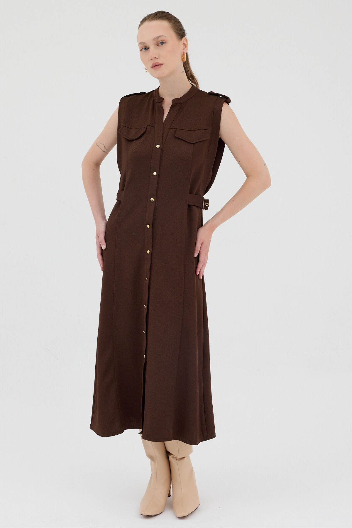 Siyah Gold Düğme Detaylı Midi Elbise 8125A Siyah Gold Düğme Detaylı Midi Elbise 8125A 26K1123UST040 42