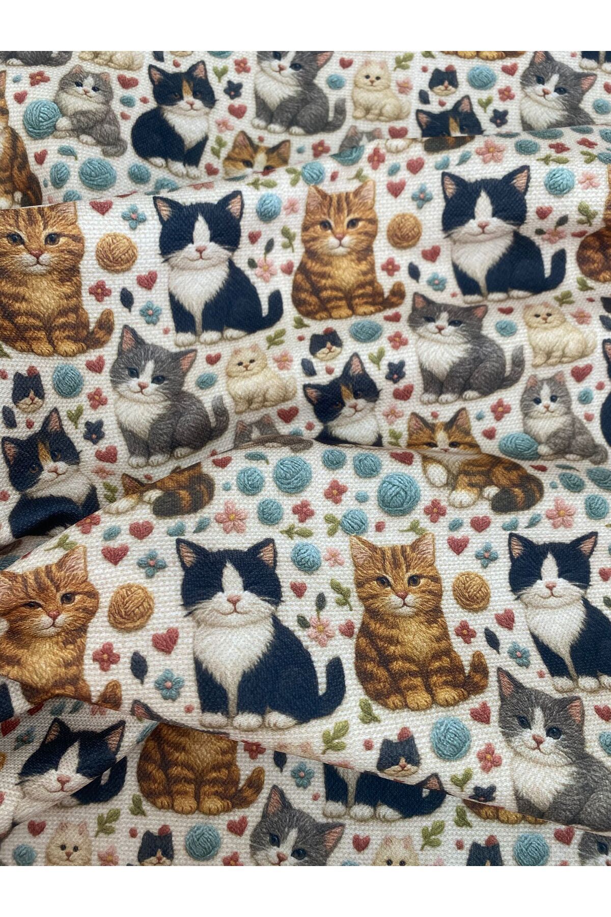 3D Nakış Sevimli Yumaklı Kediler Desenli Kumaş 3D Nakış Sevimli Yumaklı Kediler Desenli Kumaş fvr-2713