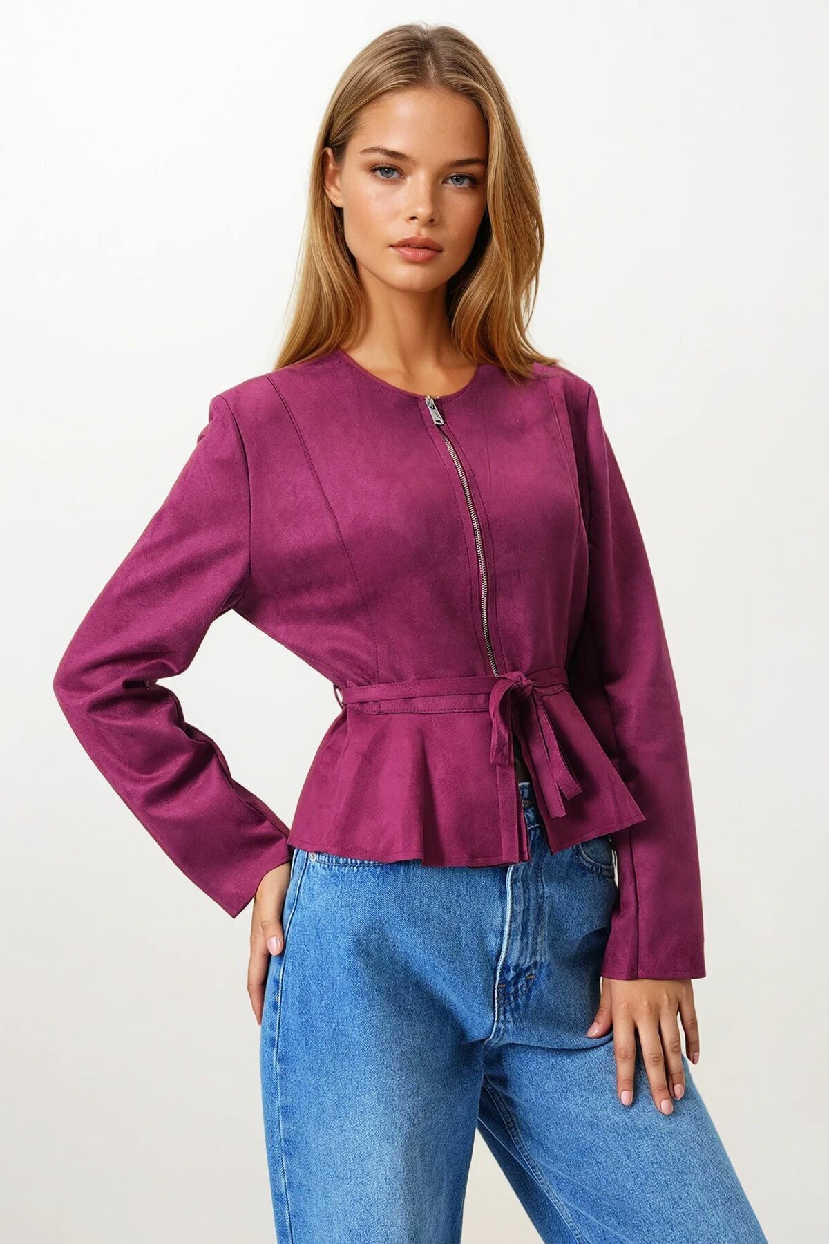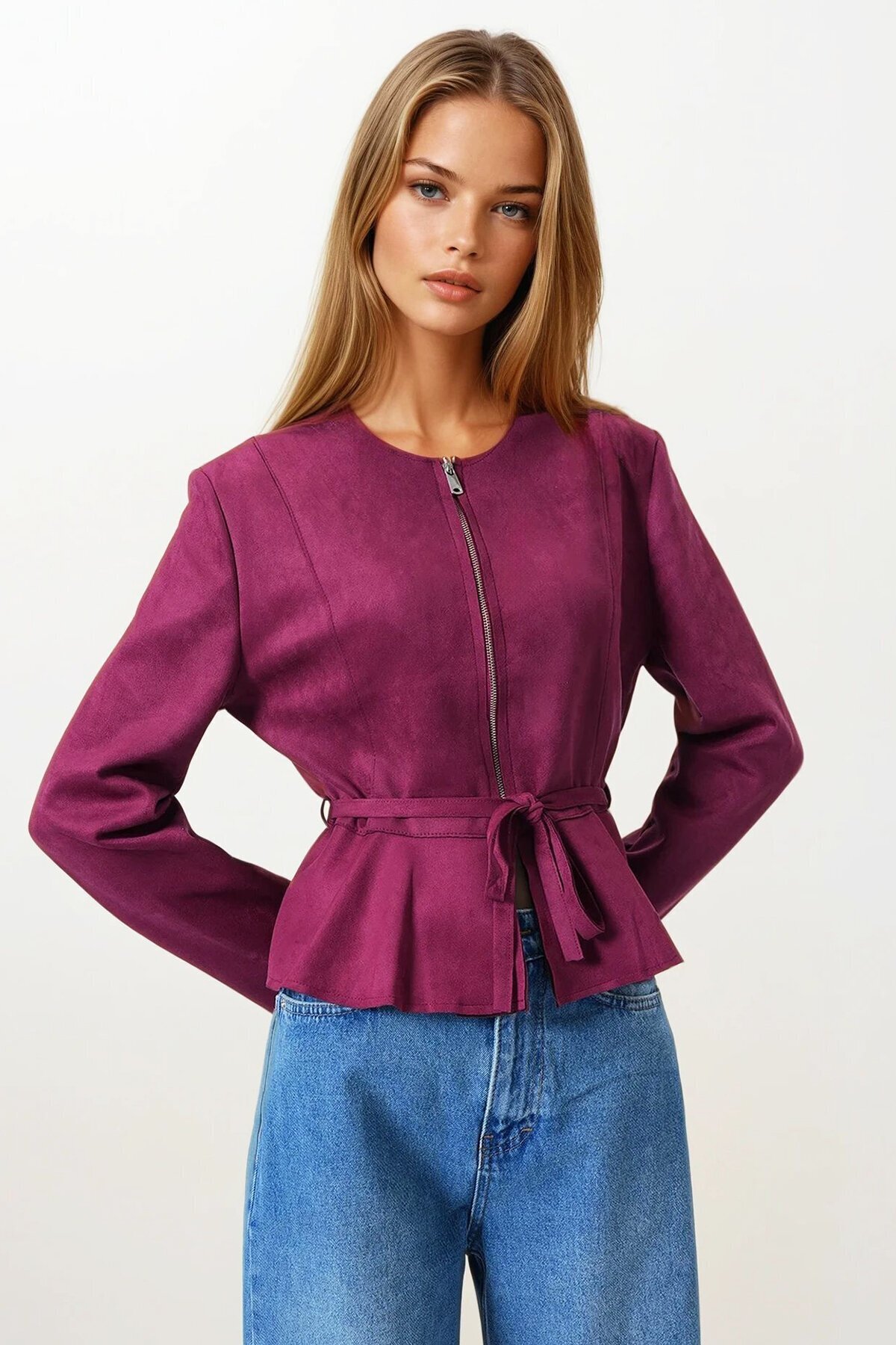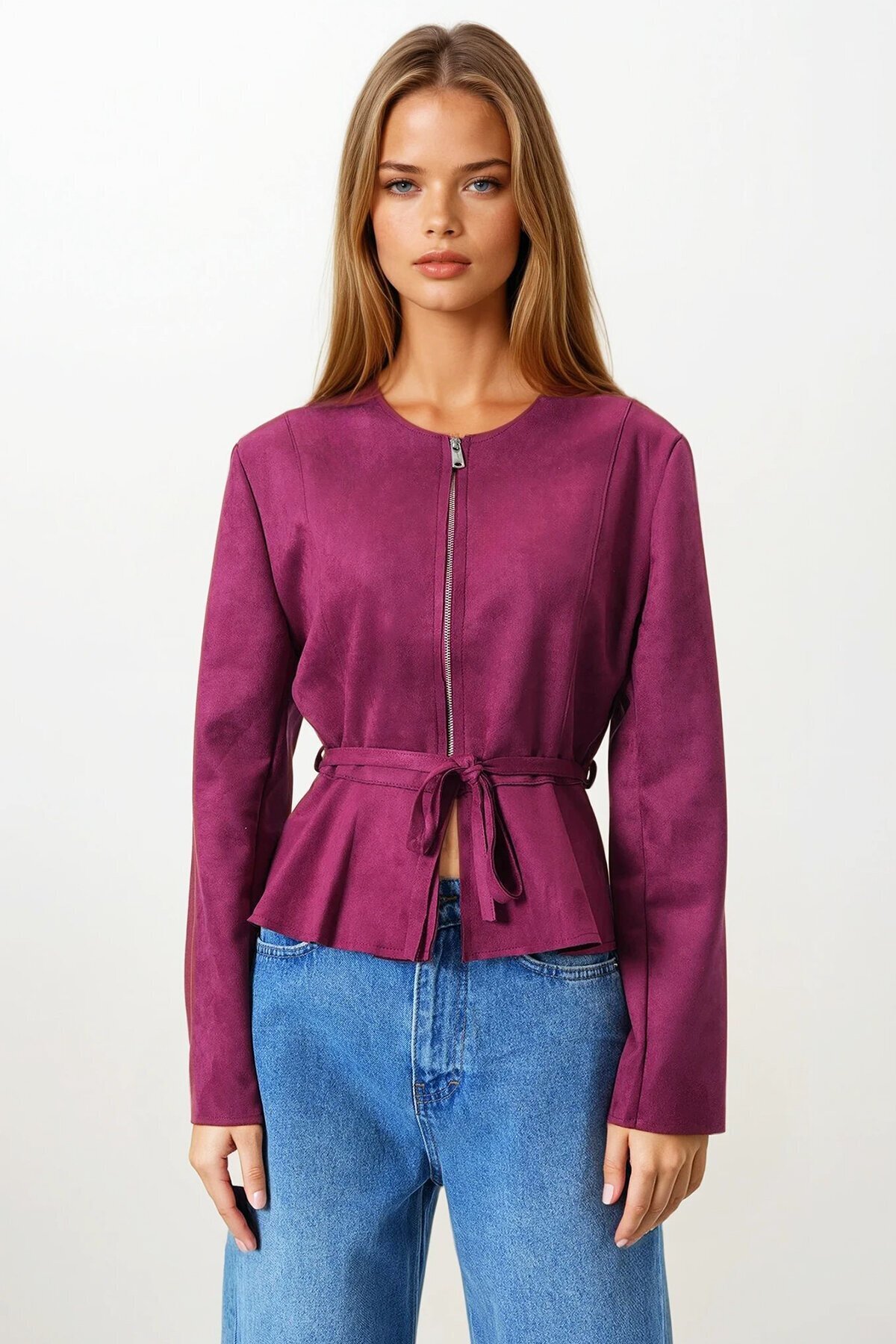 ALAÇATI STİLİ Kadın Bordo Fermuarlı Bisiklet Yaka Süet Görünümlü Kemer Bağlamalı Kısa Ceket Vs00854 ALAÇATI STİLİ Kadın Bordo Fermuarlı Bisiklet Yaka Süet Görünümlü Kemer Bağlamalı Kısa Ceket Vs00854 VS00854 XL