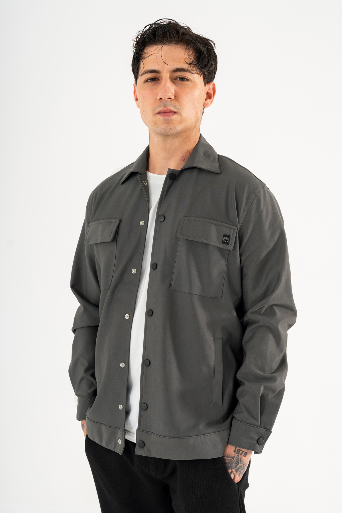 Erkek Füme Rahat Kesim Gömlek Ceket Kapaklı Çift Cepli Çıtçıtlı Erkek Füme Rahat Kesim Gömlek Ceket Kapaklı Çift Cepli Çıtçıtlı SOU-844 2XL