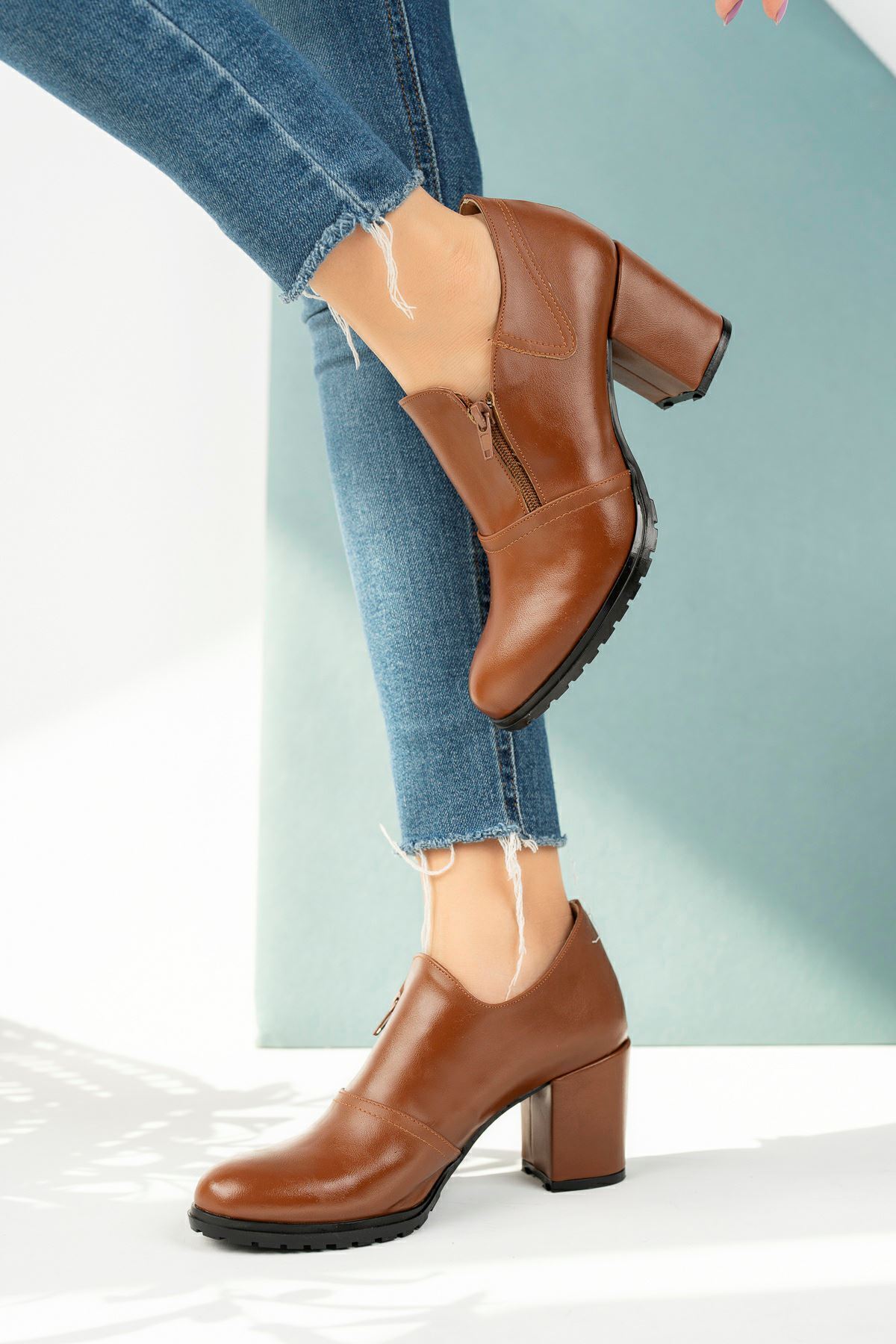 Ökçeli Fermuarlı Kadın Ayakkabı Ökçeli Fermuarlı Kadın Ayakkabı yakalıökçeli 40