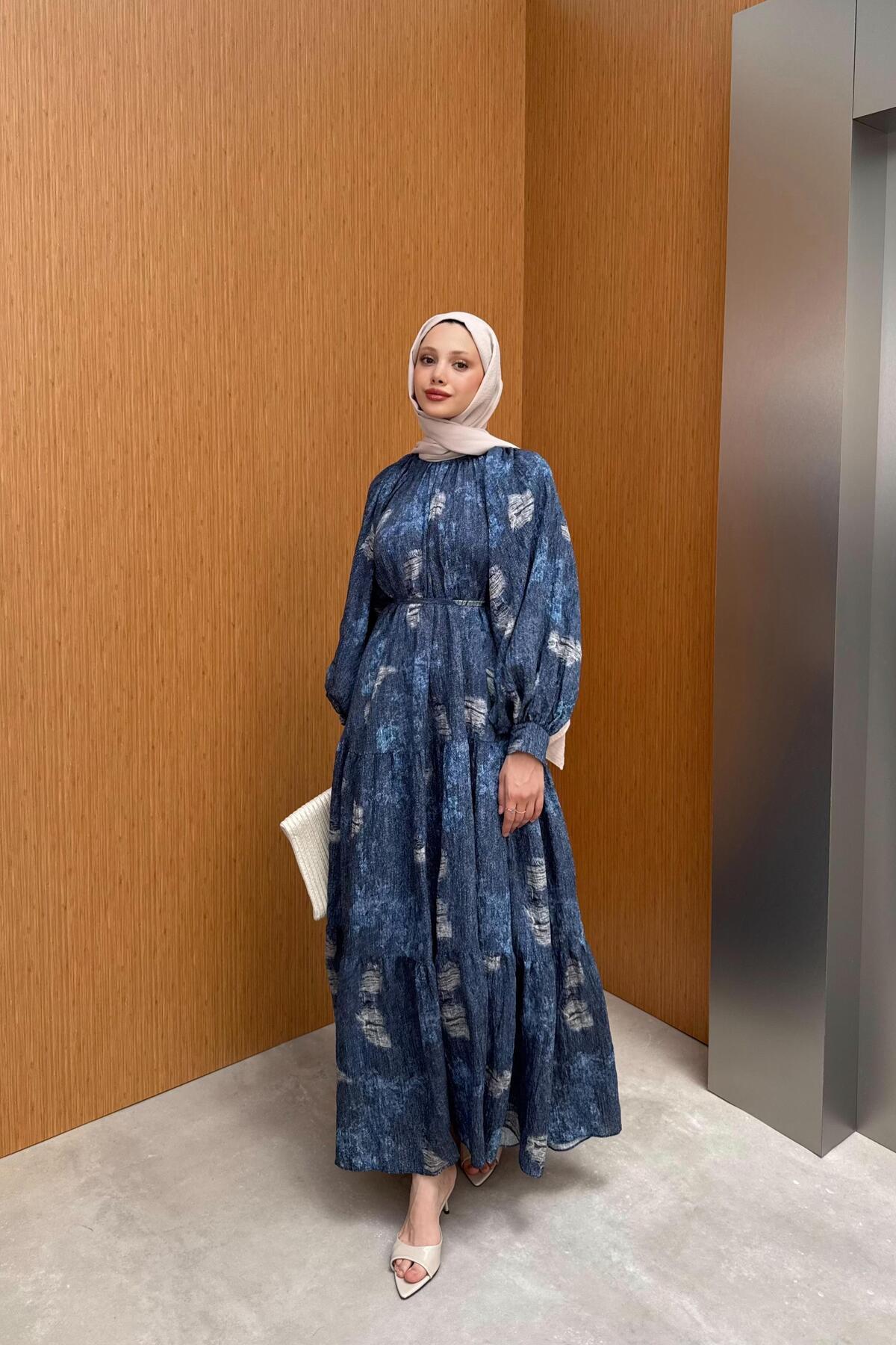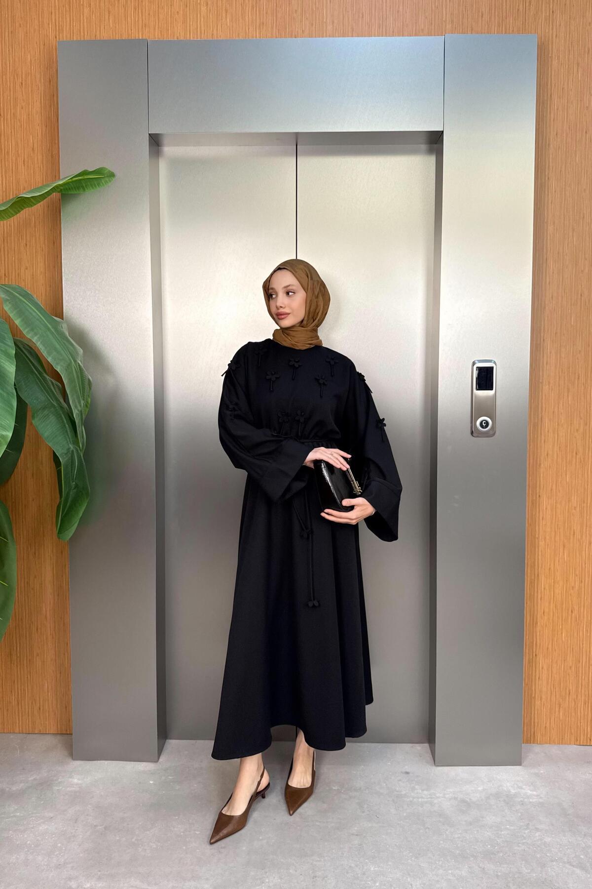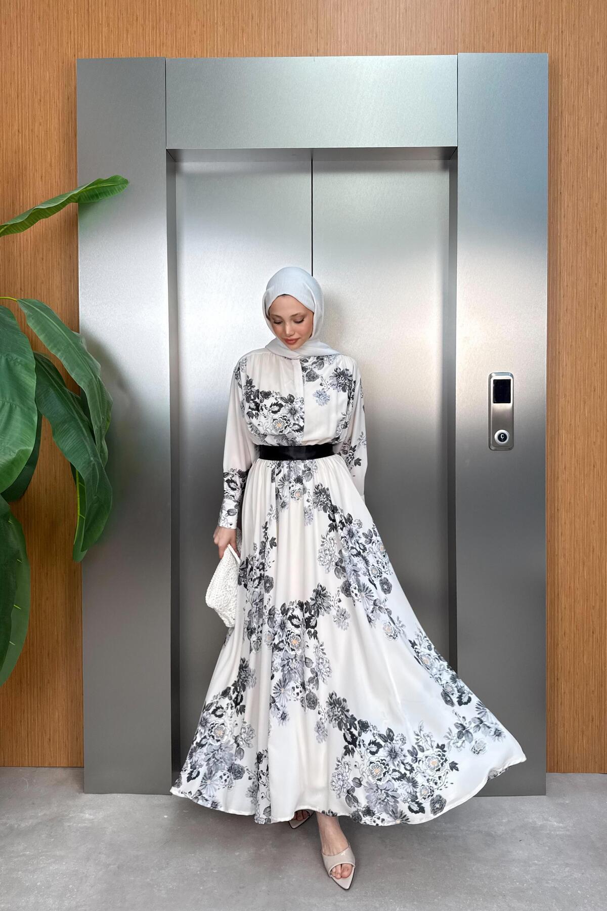 Çiçekli Desenli Bel Büzgülü Elbise - Siyah Çiçekli Desenli Bel Büzgülü Elbise - Siyah 51026 40/42