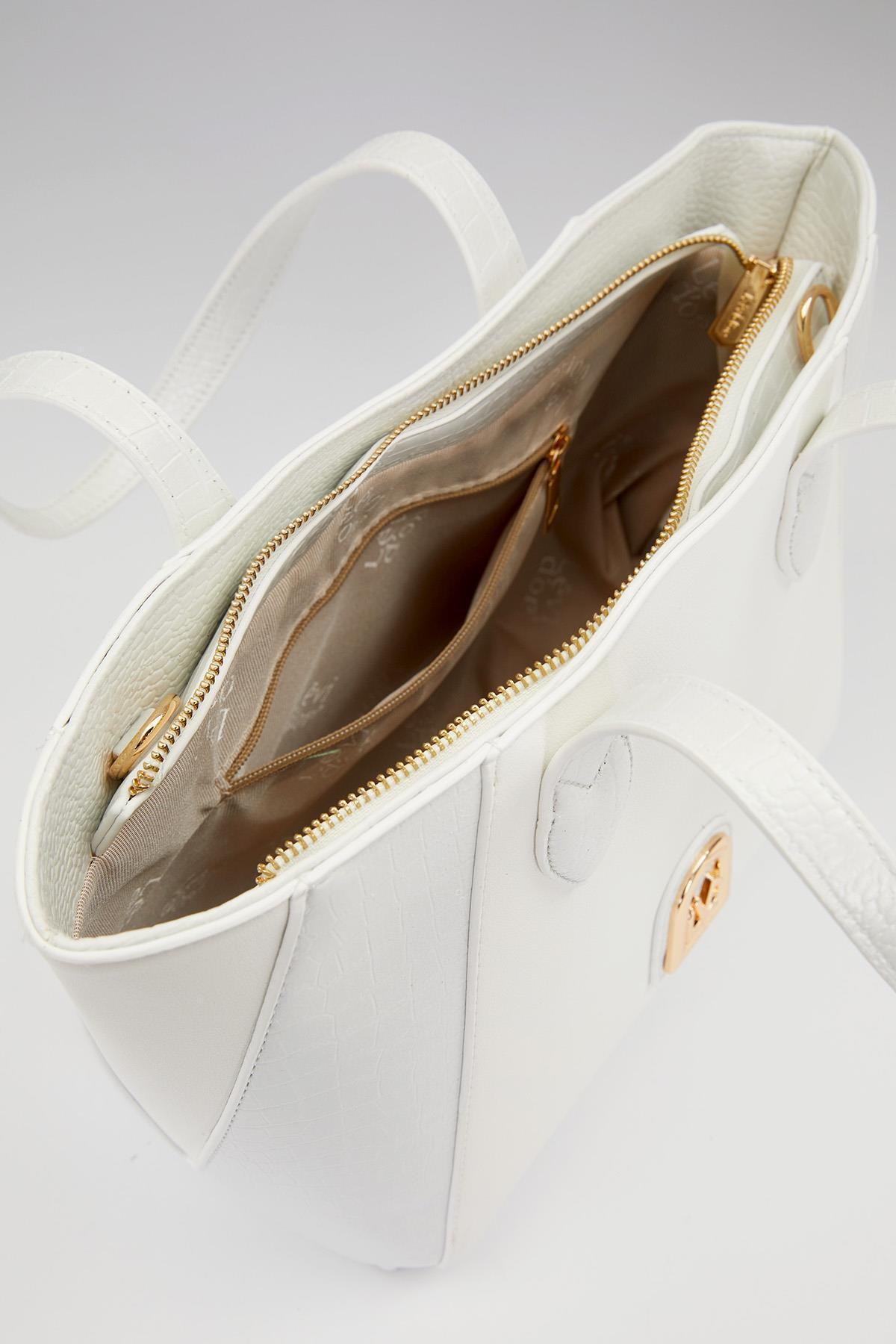 Beyaz Deri Detay Omuz Çantası Beyaz Deri Detay Omuz Çantası 930535 Standart