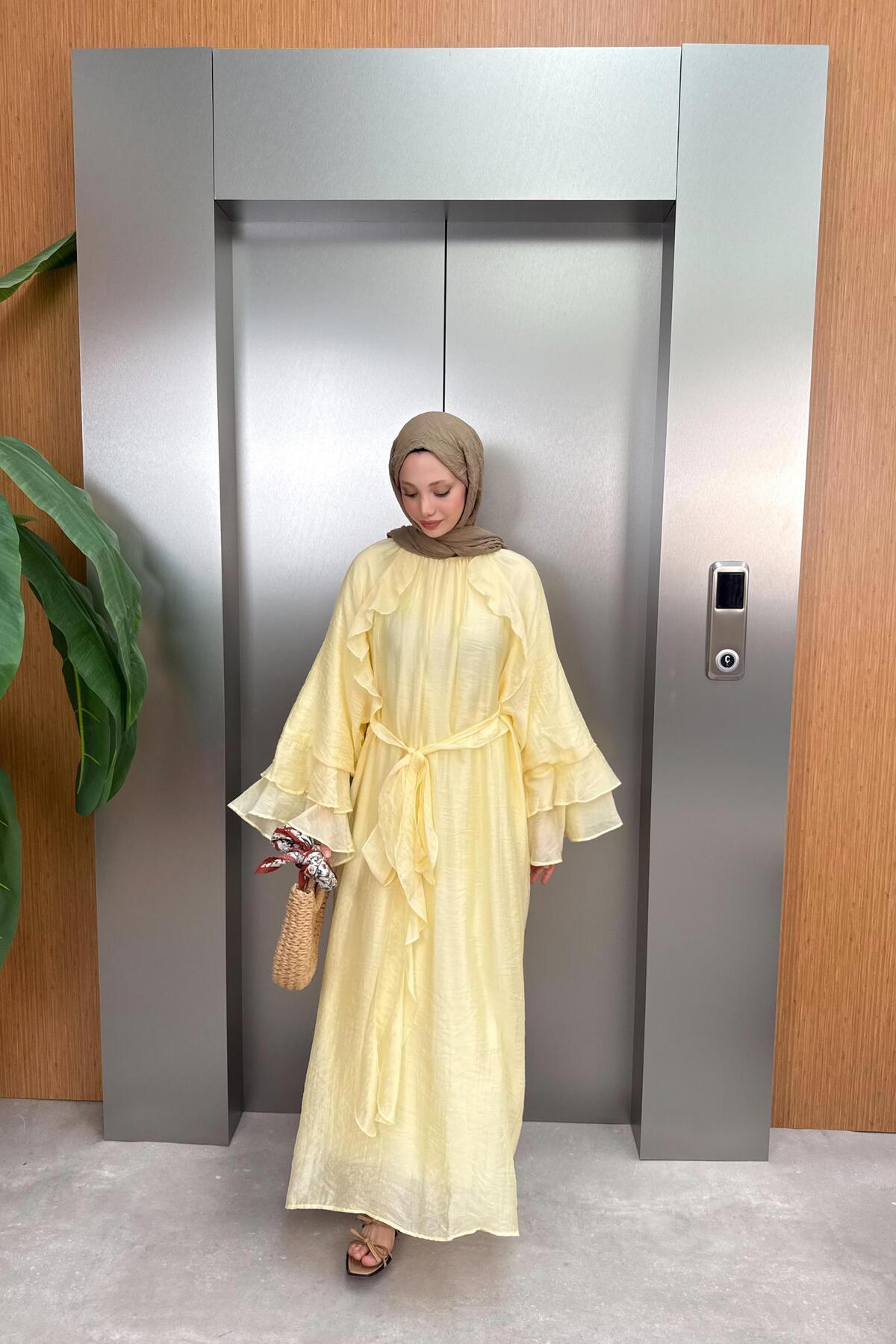 V Yaka Güpürlü Şİfon Elbise - Bej V Yaka Güpürlü Şİfon Elbise - Bej Y-1848 L