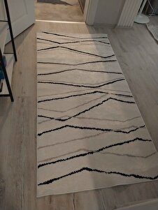 Dijital Kaymaz Yıkanabilir Gri Siyah & Krem Çizgili Salon Halısı Mutfak Halısı Yolluk Dijital Kaymaz Yıkanabilir Gri Siyah & Krem Çizgili Salon Halısı Mutfak Halısı Yolluk DC-7355 100 x 300