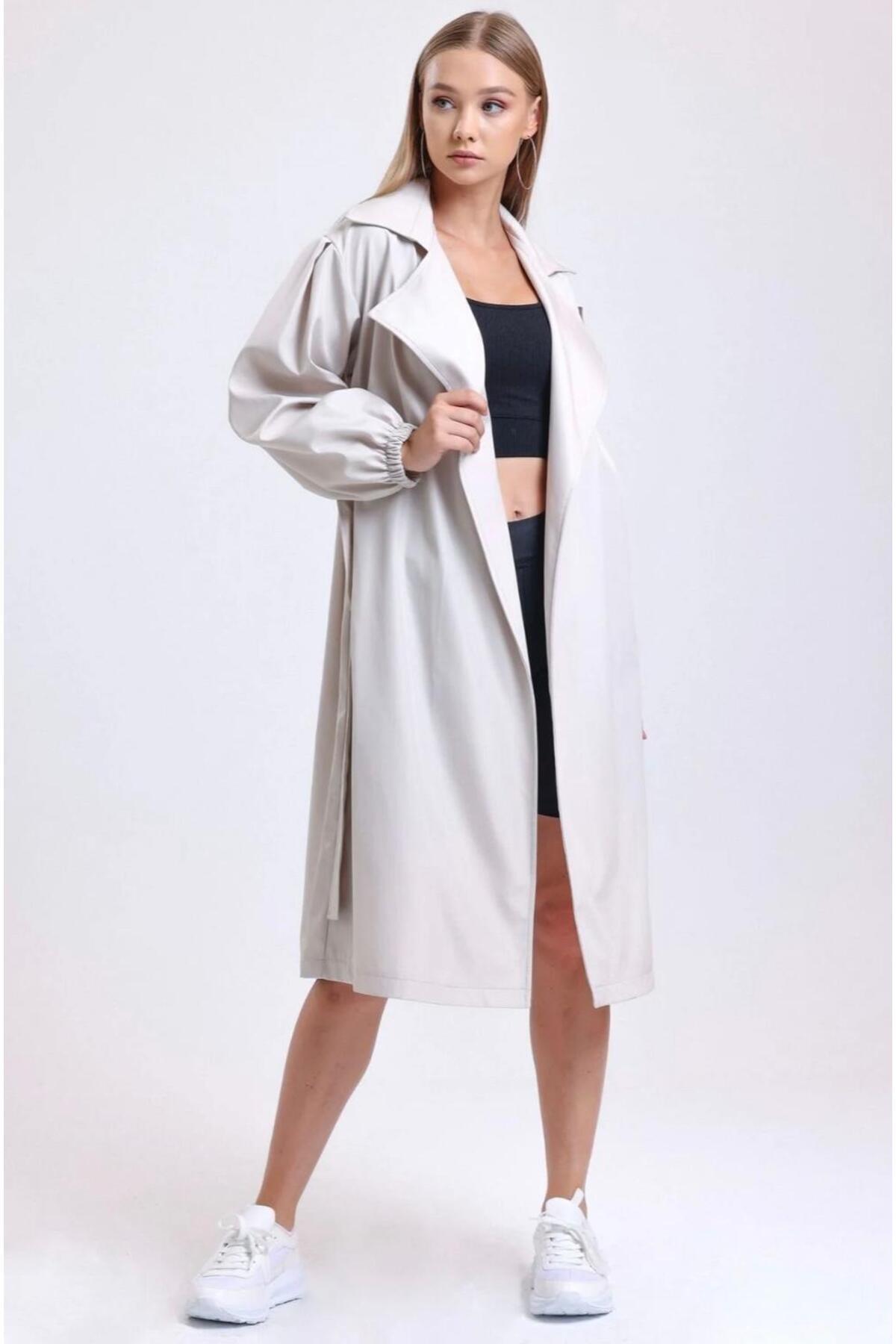 Kadın Çift Cepli Balon Kollu Kuşaklı Trençkot Kadın Çift Cepli Balon Kollu Kuşaklı Trençkot TRENÇ123 XL