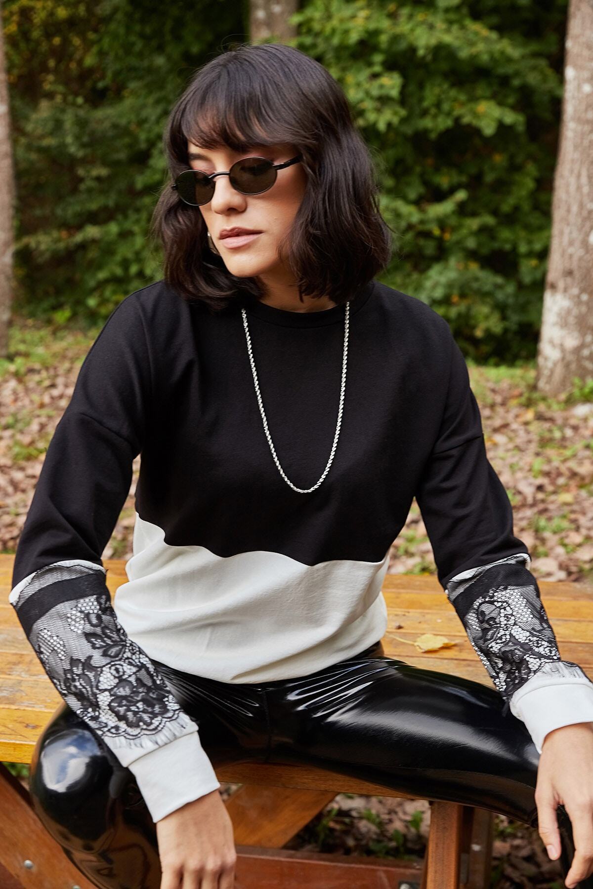 eyesof Kadın Siyah Kolu Tül Detaylı Yarım Balıkçı Kaşkorse Bluz eyesof Kadın Siyah Kolu Tül Detaylı Yarım Balıkçı Kaşkorse Bluz MDE-139336 XL