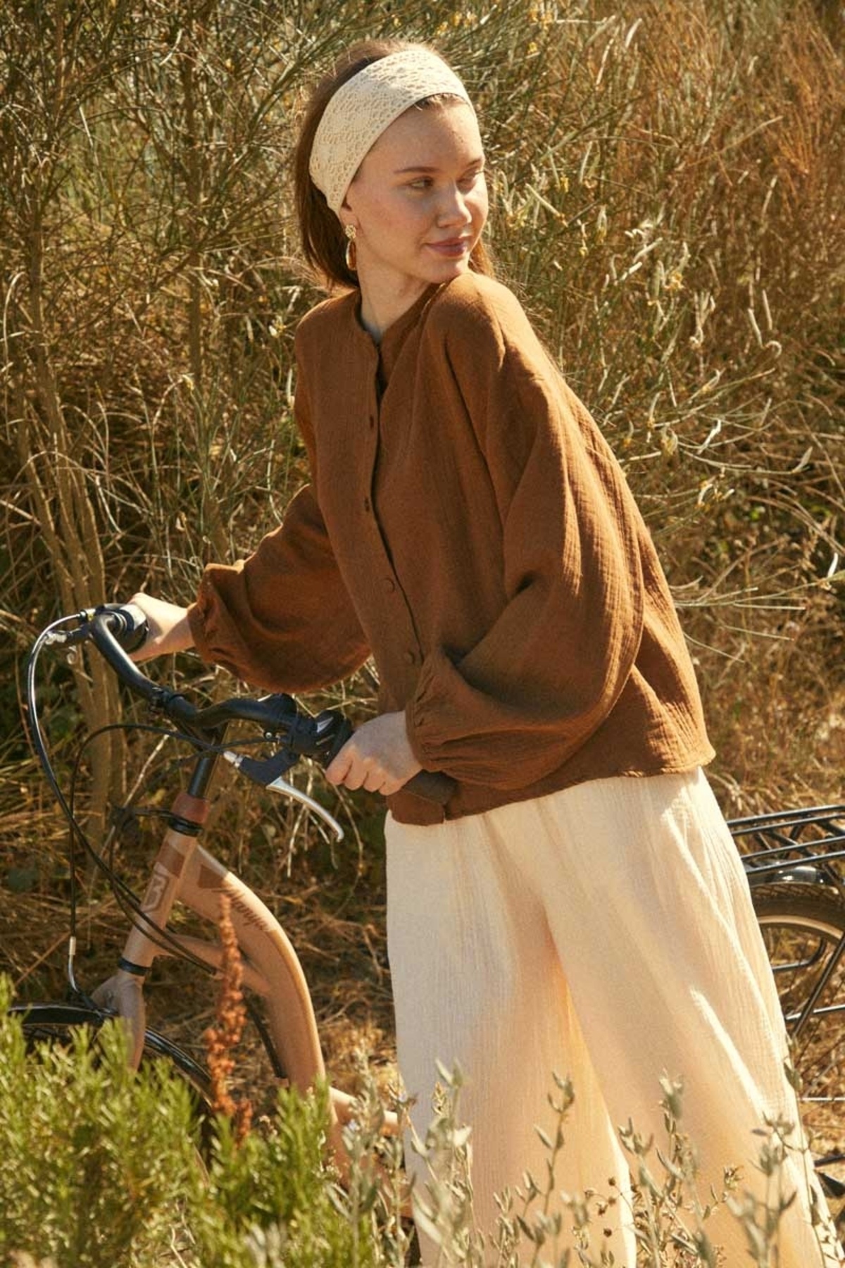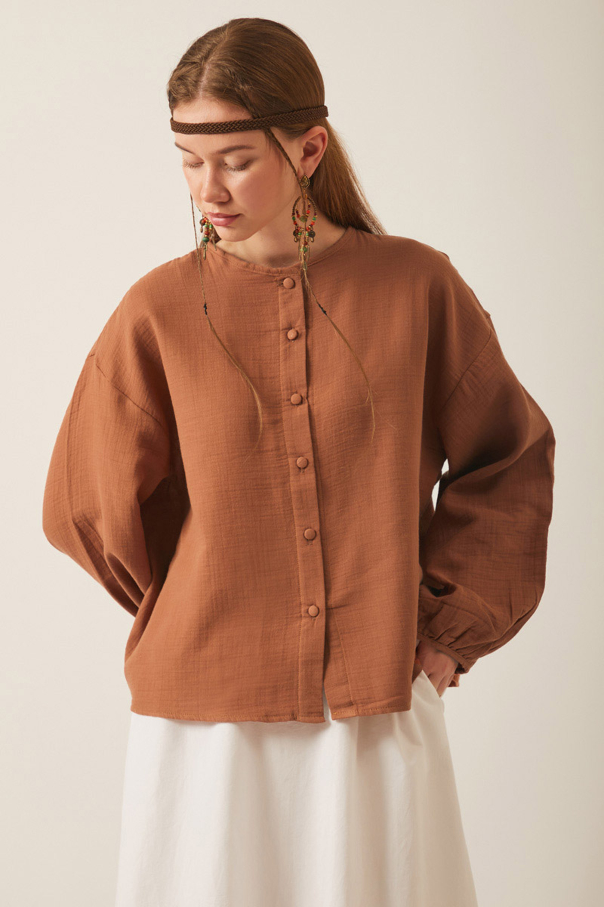 Hakim Yaka Müslin Gömlek Acı Kahve Hakim Yaka Müslin Gömlek Acı Kahve 6905 36-38/SHT