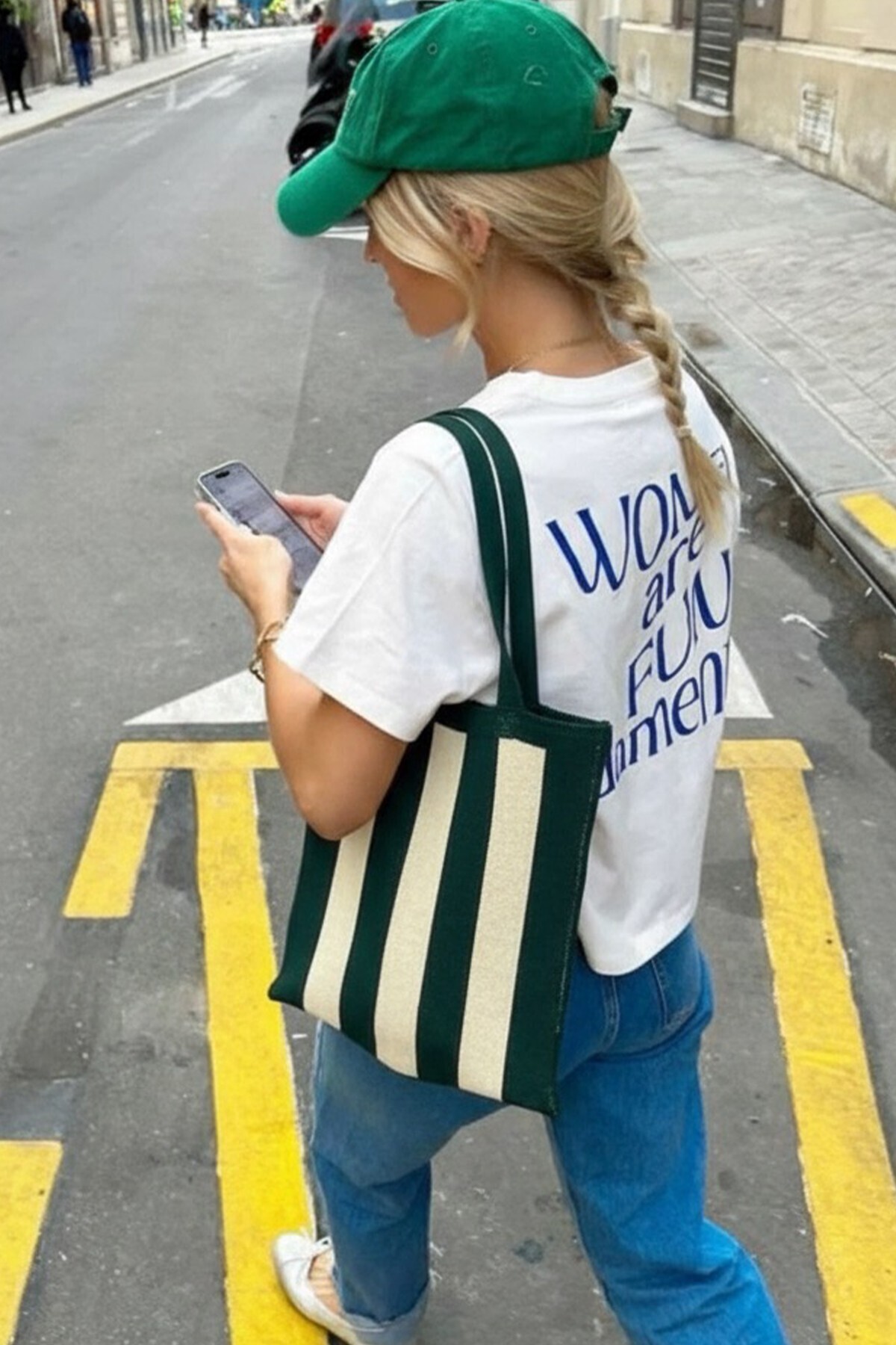Kadın Yeşil Stripes Örgü Tote Omuz Çantası Kadın Yeşil Stripes Örgü Tote Omuz Çantası BHT-4779 Standart