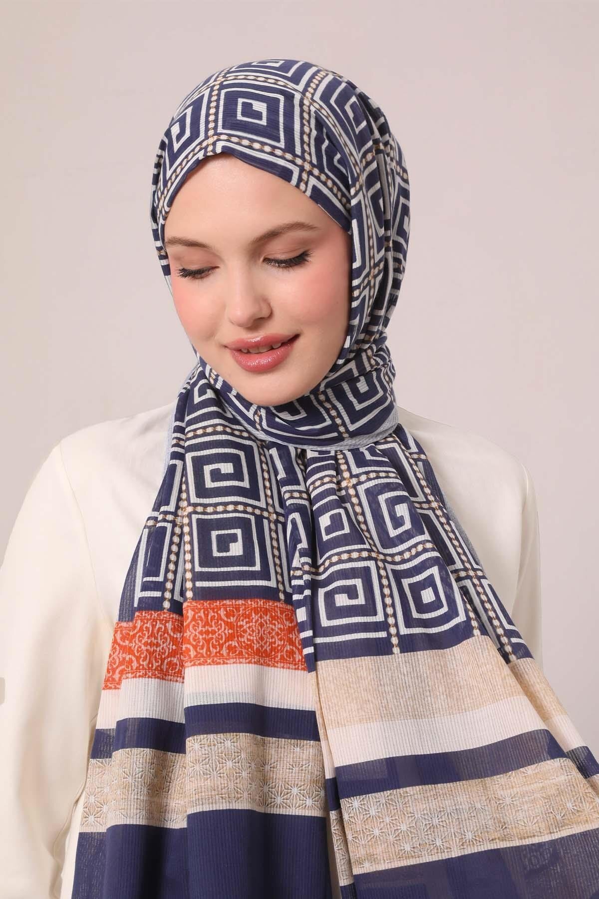Lacivert Yıldız Desen Pamuk Şal Lacivert Yıldız Desen Pamuk Şal LVD.PMK.0208 75 x 195