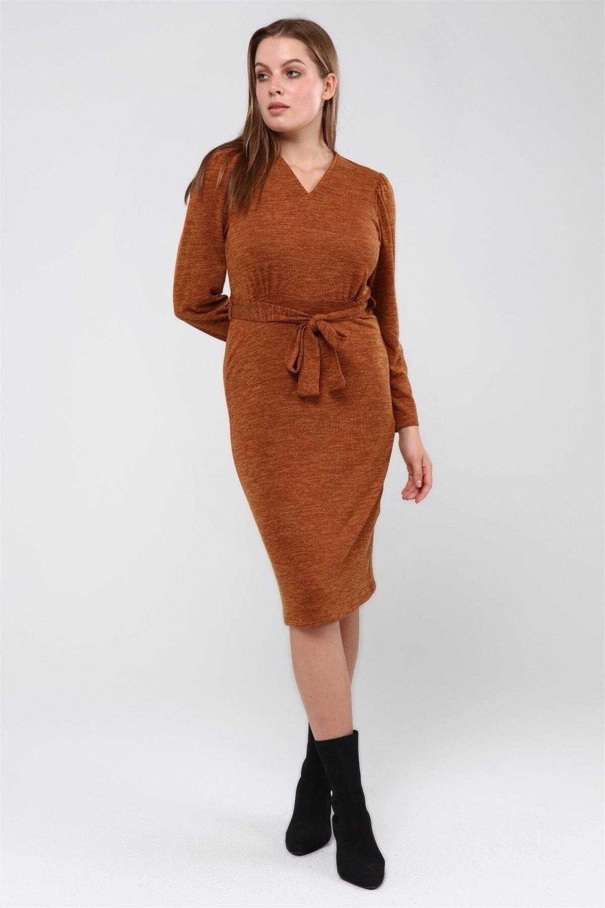 Apsen Kadın-V Yaka Bağlama Detaylı midi Boy triko Elbise 4452/110 Apsen Kadın-V Yaka Bağlama Detaylı midi Boy triko Elbise 4452/110 46