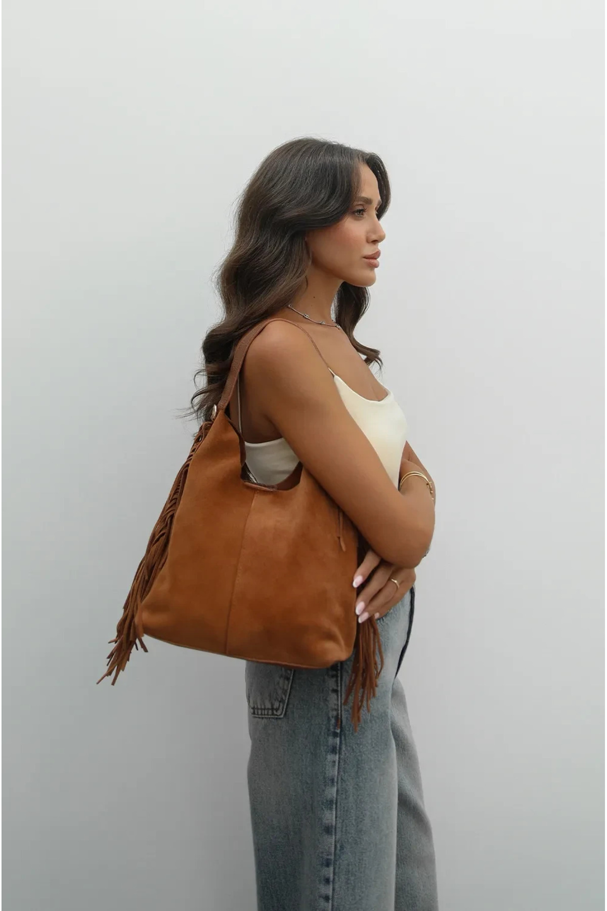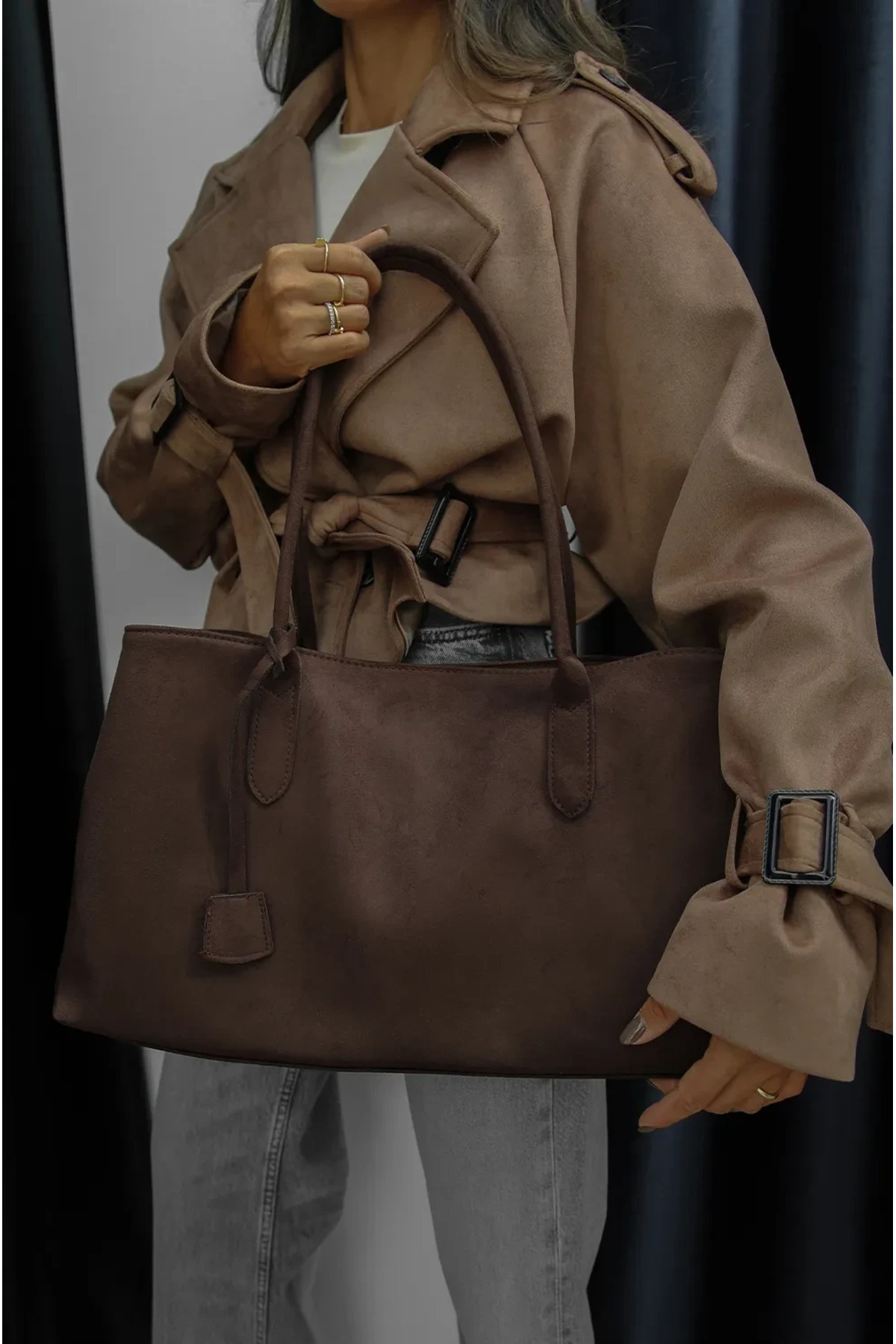Andrea Hakiki Süet Taba El ve Omuz Çantası Andrea Hakiki Süet Taba El ve Omuz Çantası ROHEANDREA Standart