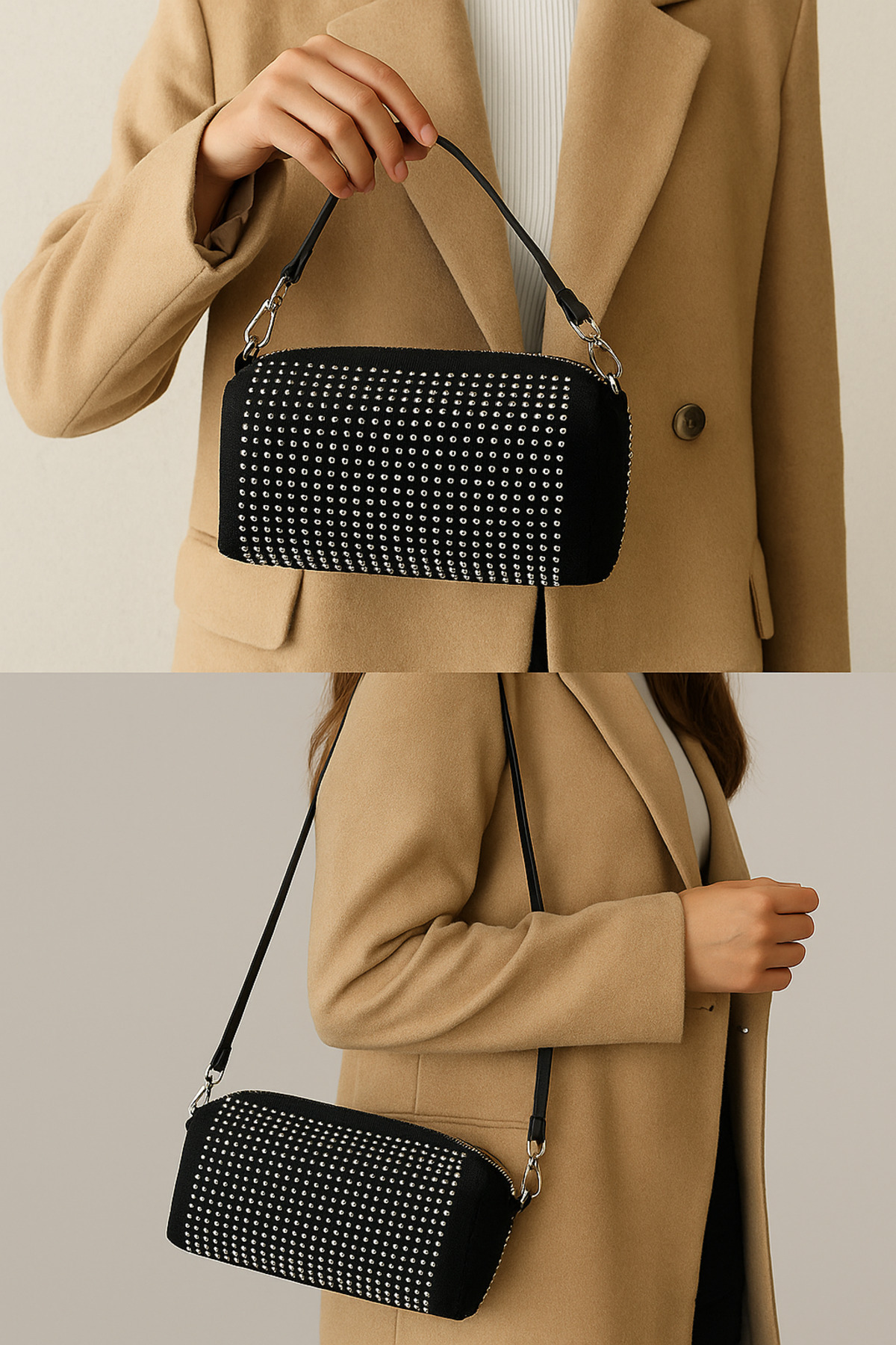 Kadın Siyahve beyaz Taş Detaylı Gece ve Günlük Omuz Çantası – Zincir Askılı Şık Çanta Kadın Siyahve beyaz Taş Detaylı Gece ve Günlük Omuz Çantası – Zincir Askılı Şık Çanta 29-004 Standart