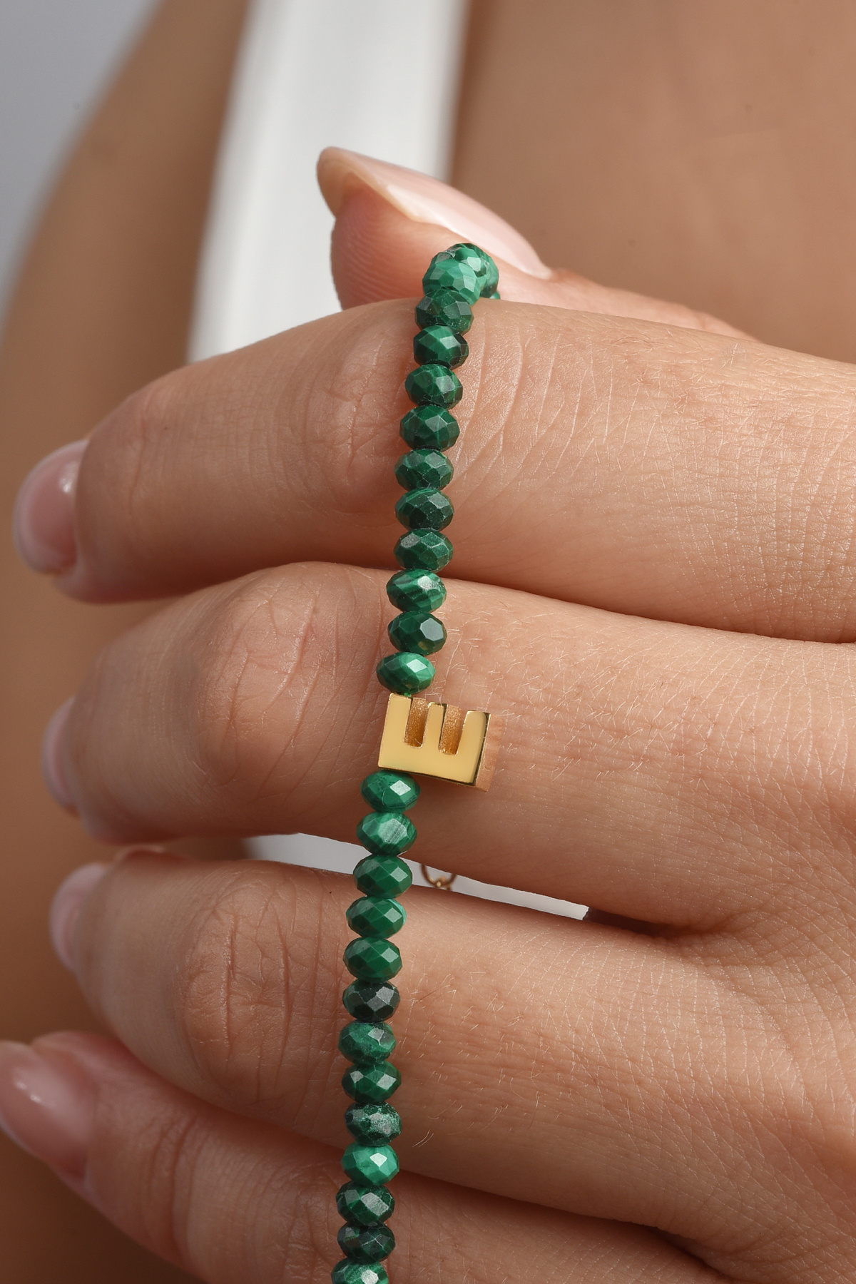 925 Ayar Gümüş Altın Kaplama Malakit Doğal Taş Harf Kolye - NGS00116 925 Ayar Gümüş Altın Kaplama Malakit Doğal Taş Harf Kolye - NGS00116 45 cm