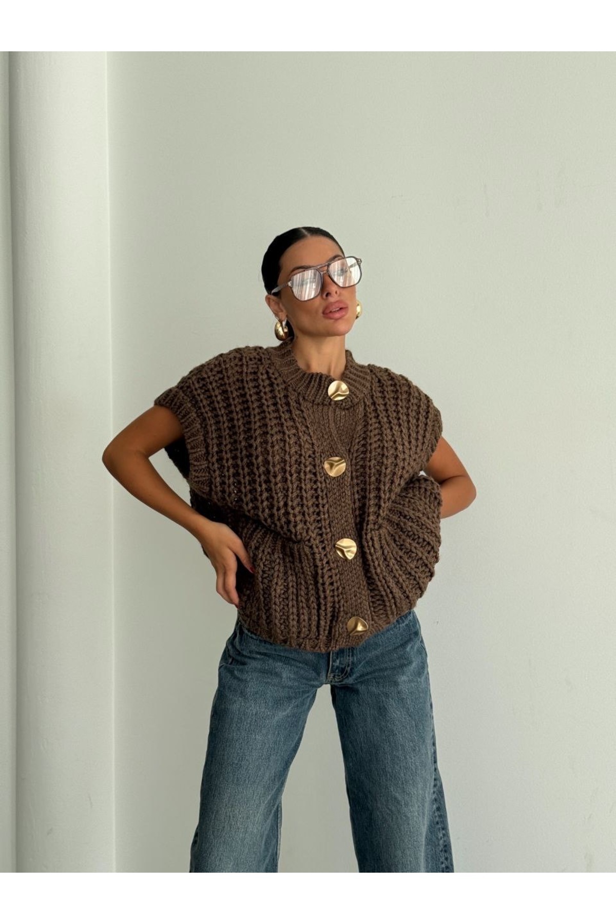 Örme Düğmeli Triko Yelek Örme Düğmeli Triko Yelek GD459954 L