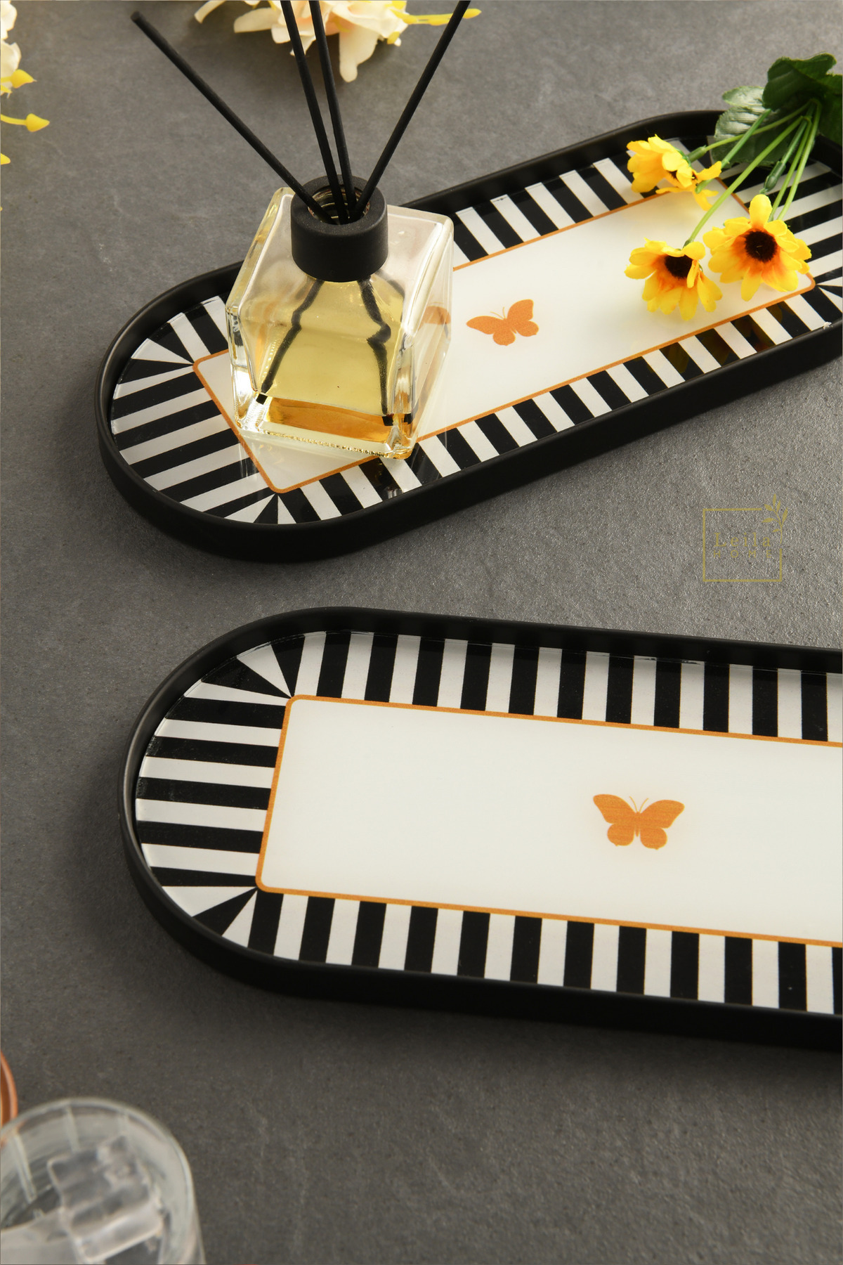 Kelebek Desenli Cam Sunumluk-Tepsi Siyah 2 Adet 12x30 cm Kelebek Desenli Cam Sunumluk-Tepsi Siyah 2 Adet 12x30 cm BKZ-PLS5010k تک سایز