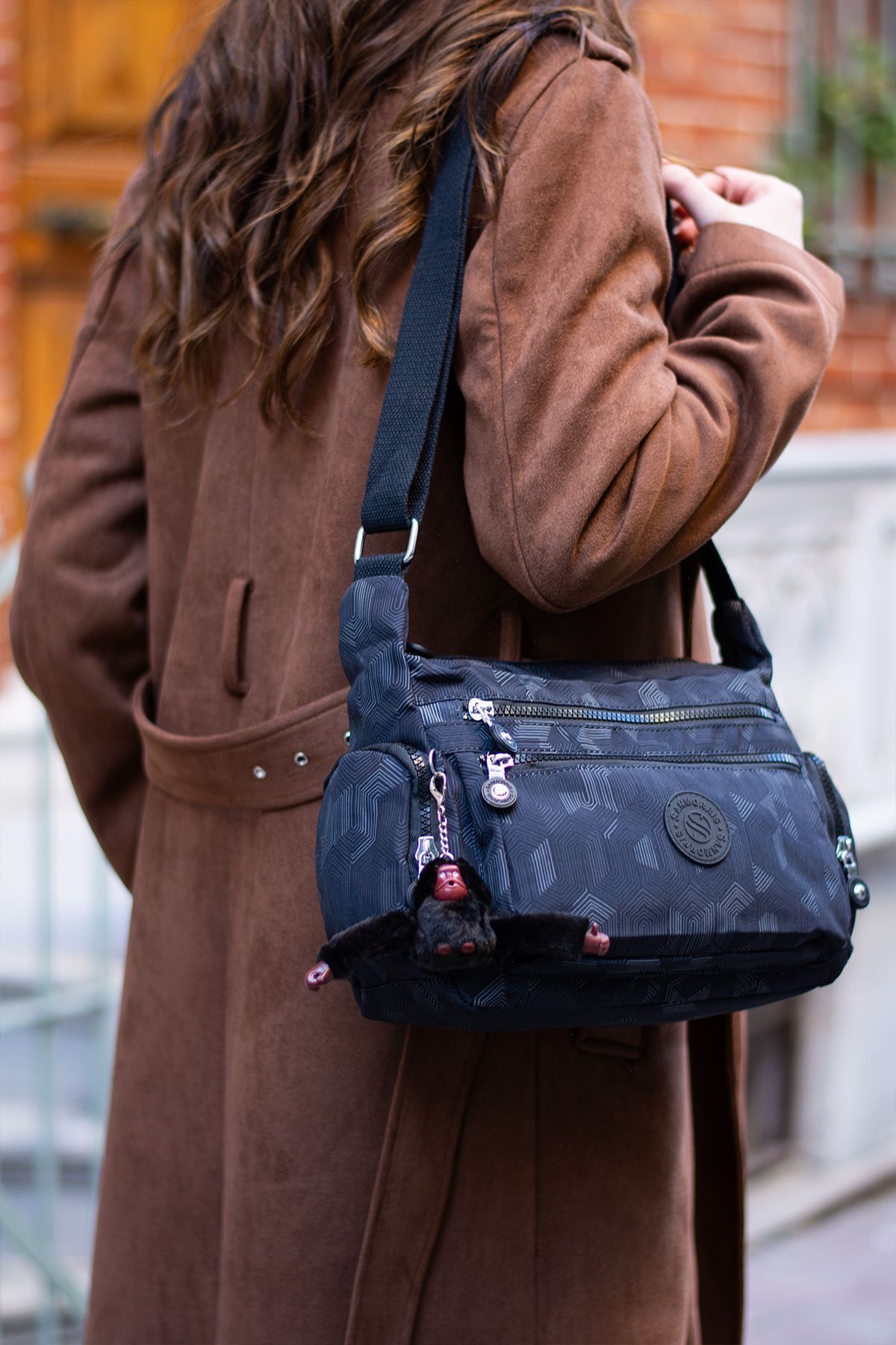 Kadın Suya Dayanıklı Paraşüt Kumaş Çok Gözlü Ayarlanabilir Black Pattern Çapraz Askılı Omuz Çantası Kadın Suya Dayanıklı Paraşüt Kumaş Çok Gözlü Ayarlanabilir Black Pattern Çapraz Askılı Omuz Çantası S-3007 تک سایز