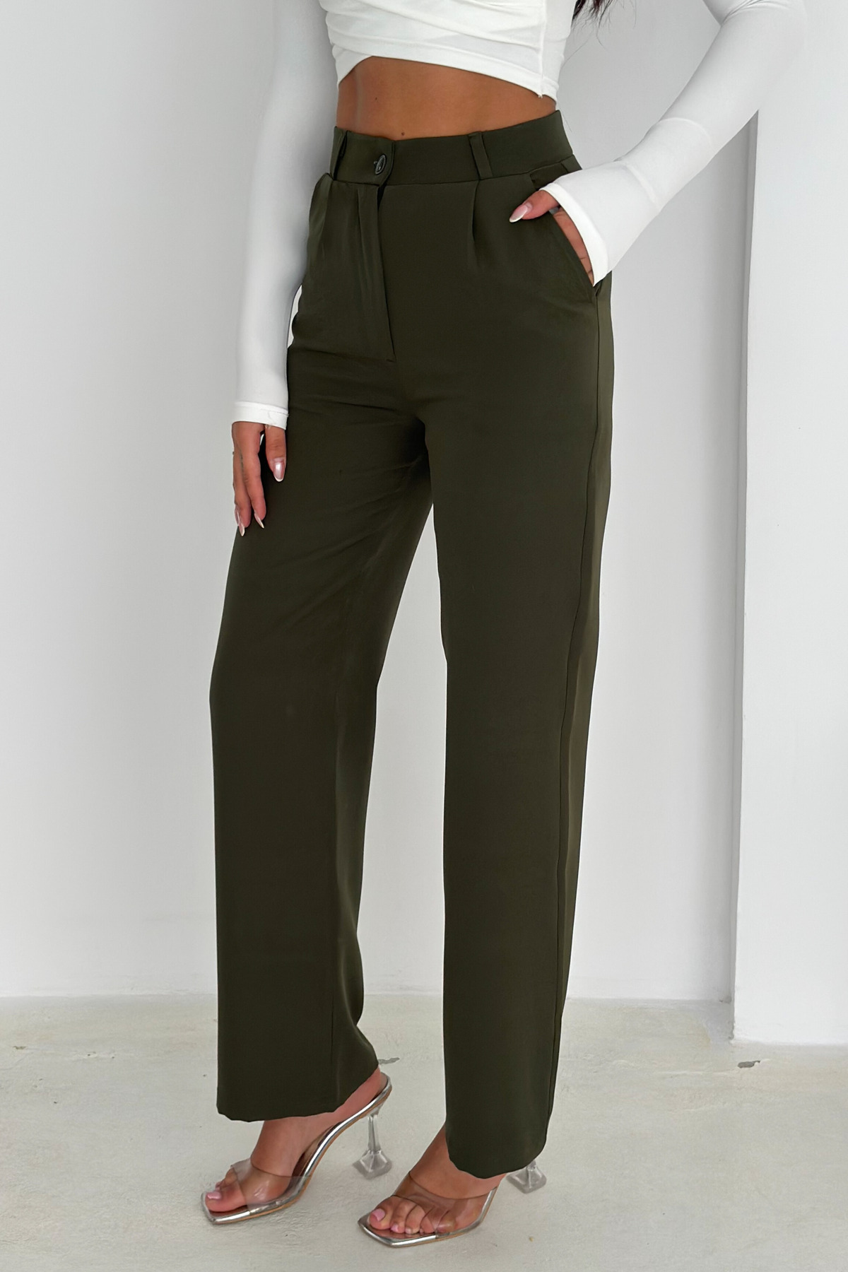 Kadın Beli Lastikli Likralı Yüksek Bel Palazzo Pantolon Kadın Beli Lastikli Likralı Yüksek Bel Palazzo Pantolon BRNTPNT0001 XL