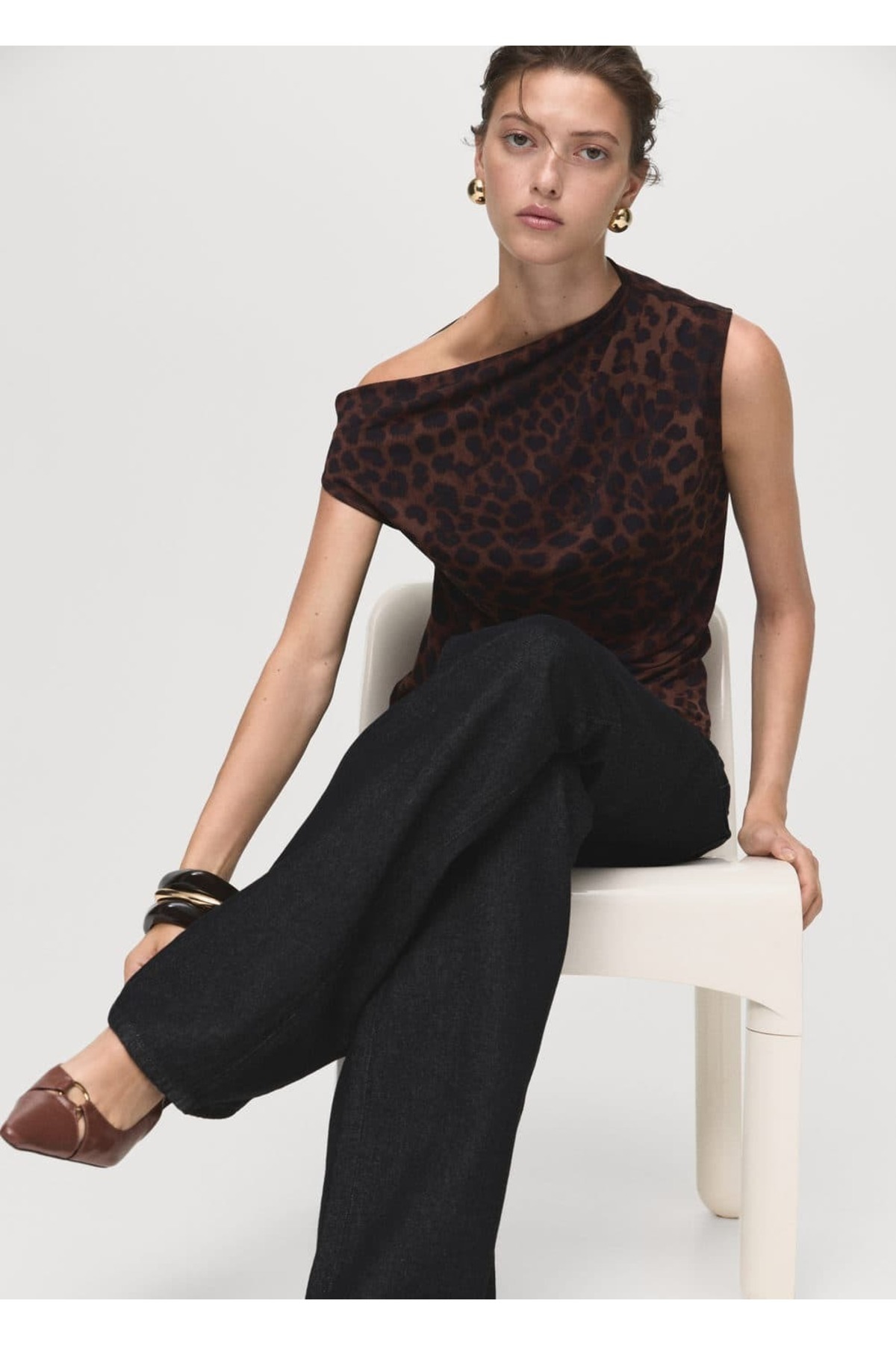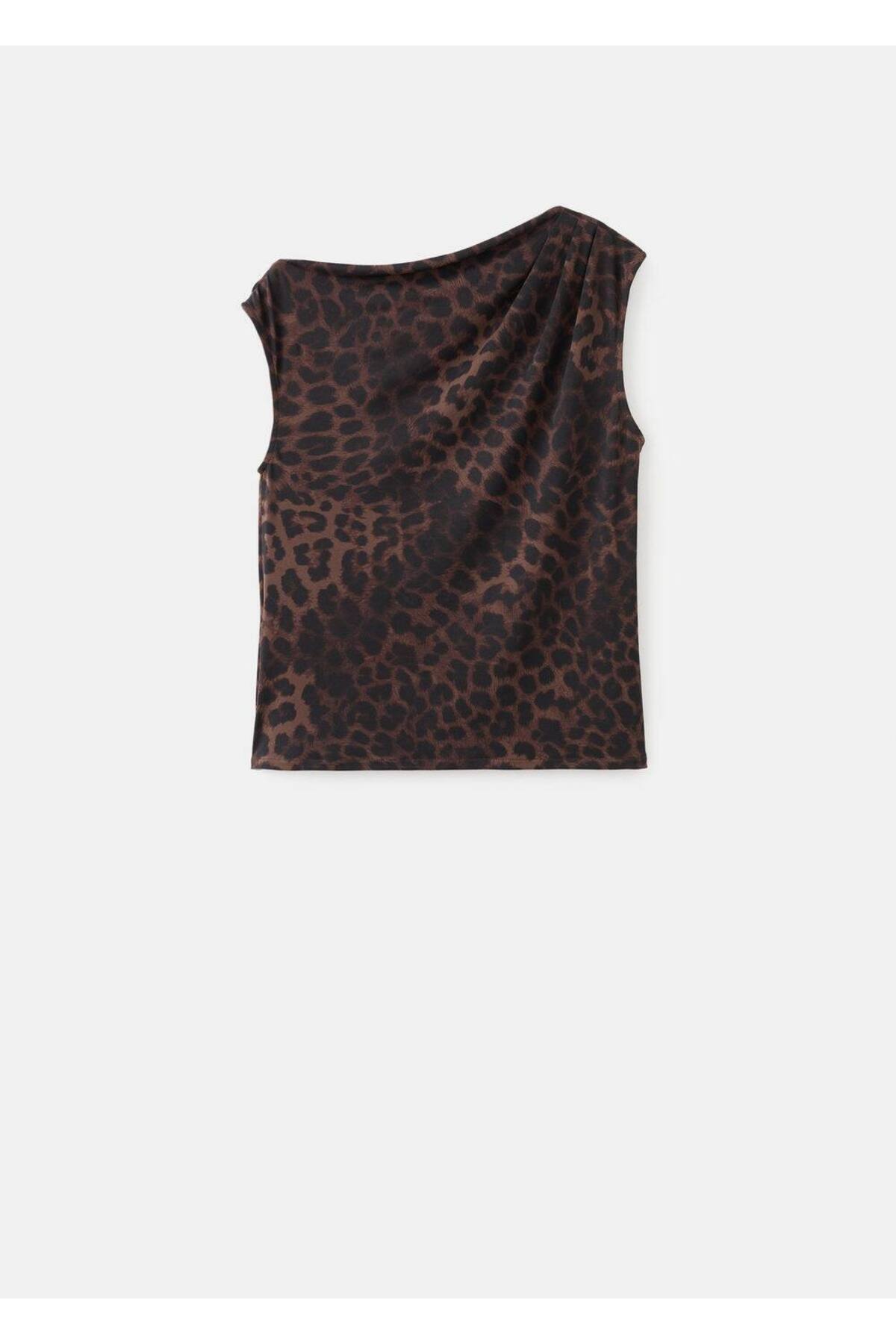 Asimetrik yaka leopar desenli bluz Asimetrik yaka leopar desenli bluz 17056003 2XL