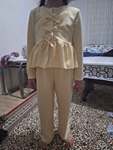 Kız Çocuk Çizgili Fırfırlı Pijama Takımı 5-16 Yaş 12045 Kız Çocuk Çizgili Fırfırlı Pijama Takımı 5-16 Yaş 12045 CMKW012044 15-16 Yaş