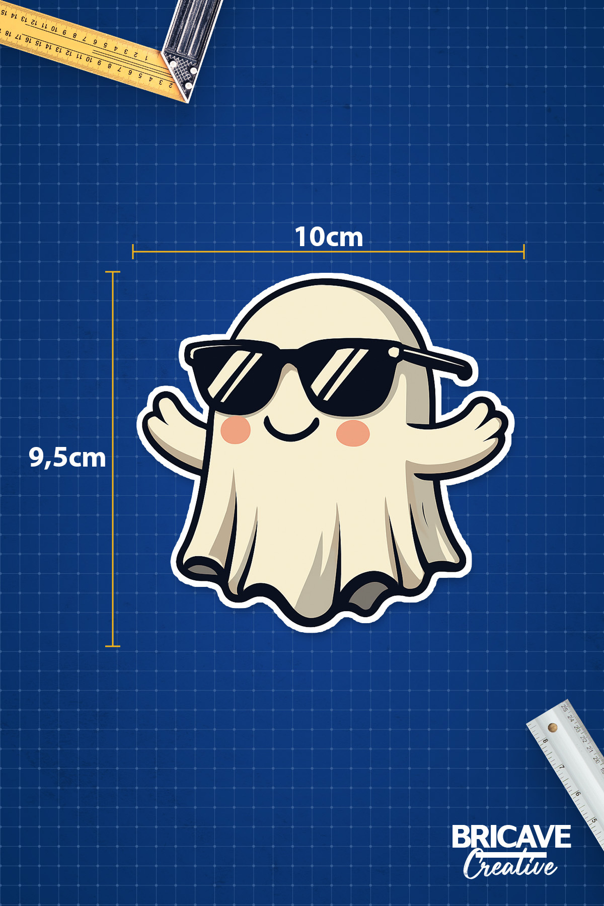 Şirin Gözlüklü Hayalet Sticker Araba Motosiklet Kask Laptop Cam Etiket Sticker 10x9,5cm B1 bri-695