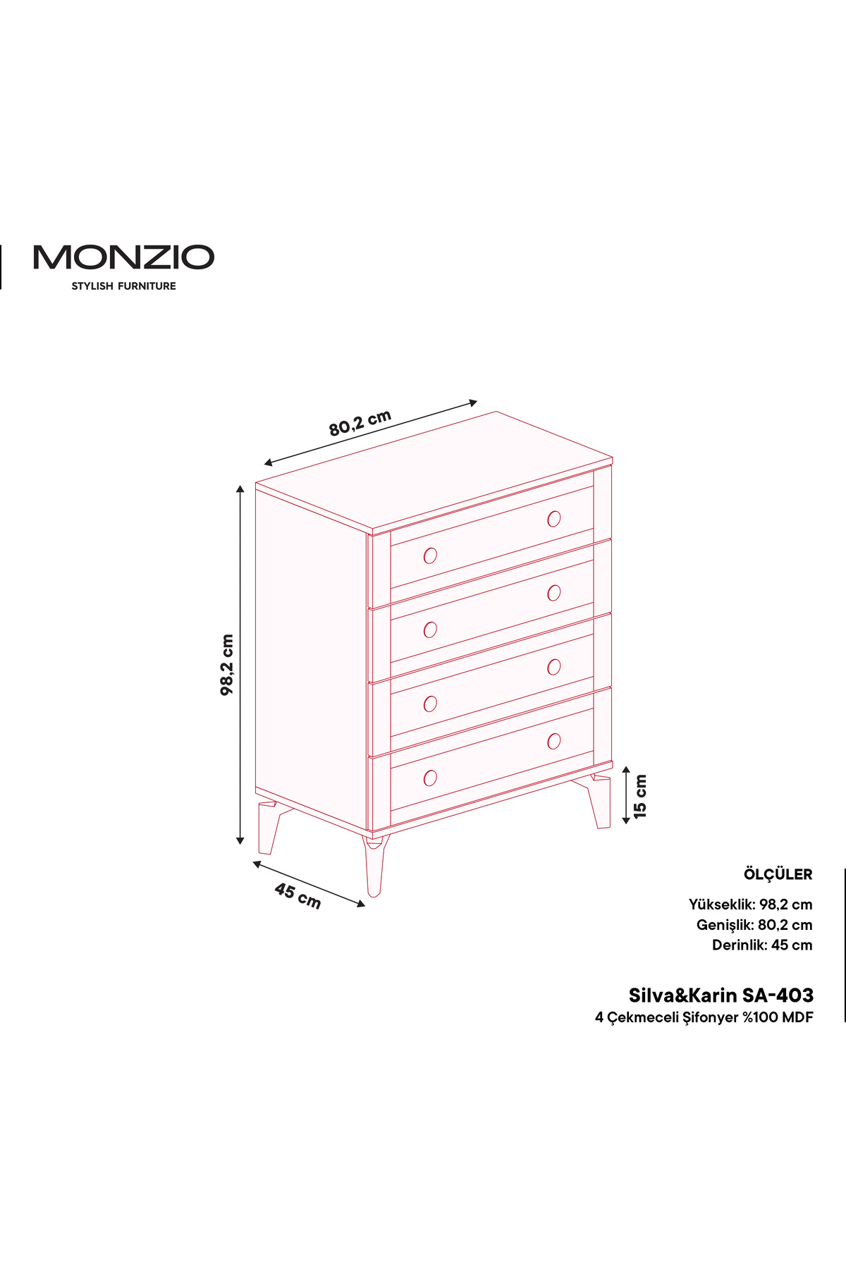 Silva&Karin 4 Çekmeceli Şifonyer %100 MDF Silva&Karin 4 Çekmeceli Şifonyer %100 MDF SA403 تک سایز