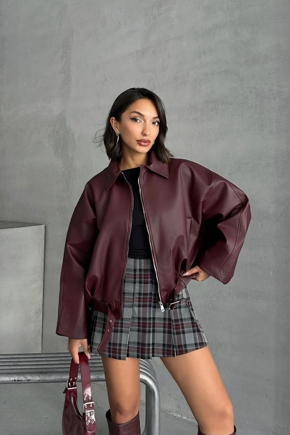Yeni Sezon Bomber Kadın Oversize Deri Ceket Yeni Sezon Bomber Kadın Oversize Deri Ceket dmr1 L