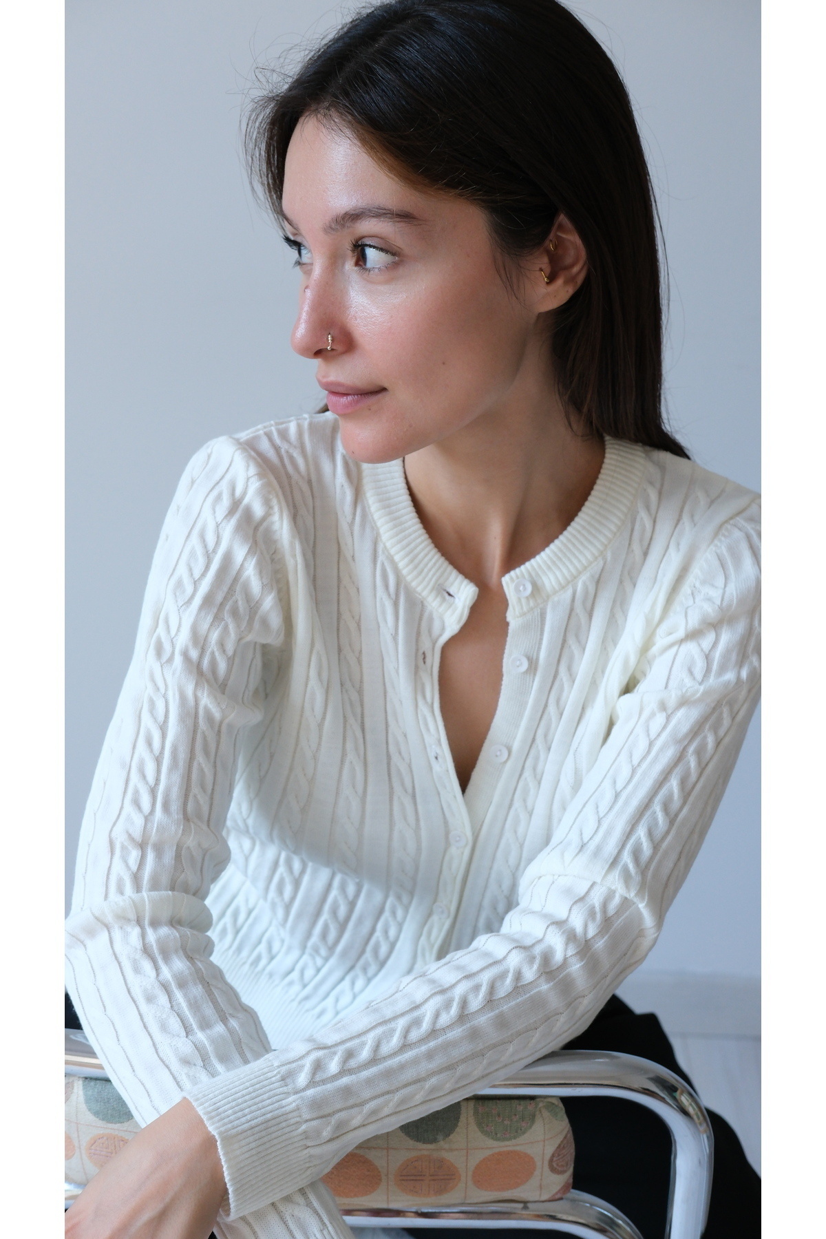 Una Fiaba Krem Rengi Uzun Kollu Düğmeli Saç Örgü Triko Hırka Una Fiaba Krem Rengi Uzun Kollu Düğmeli Saç Örgü Triko Hırka 252491 XL