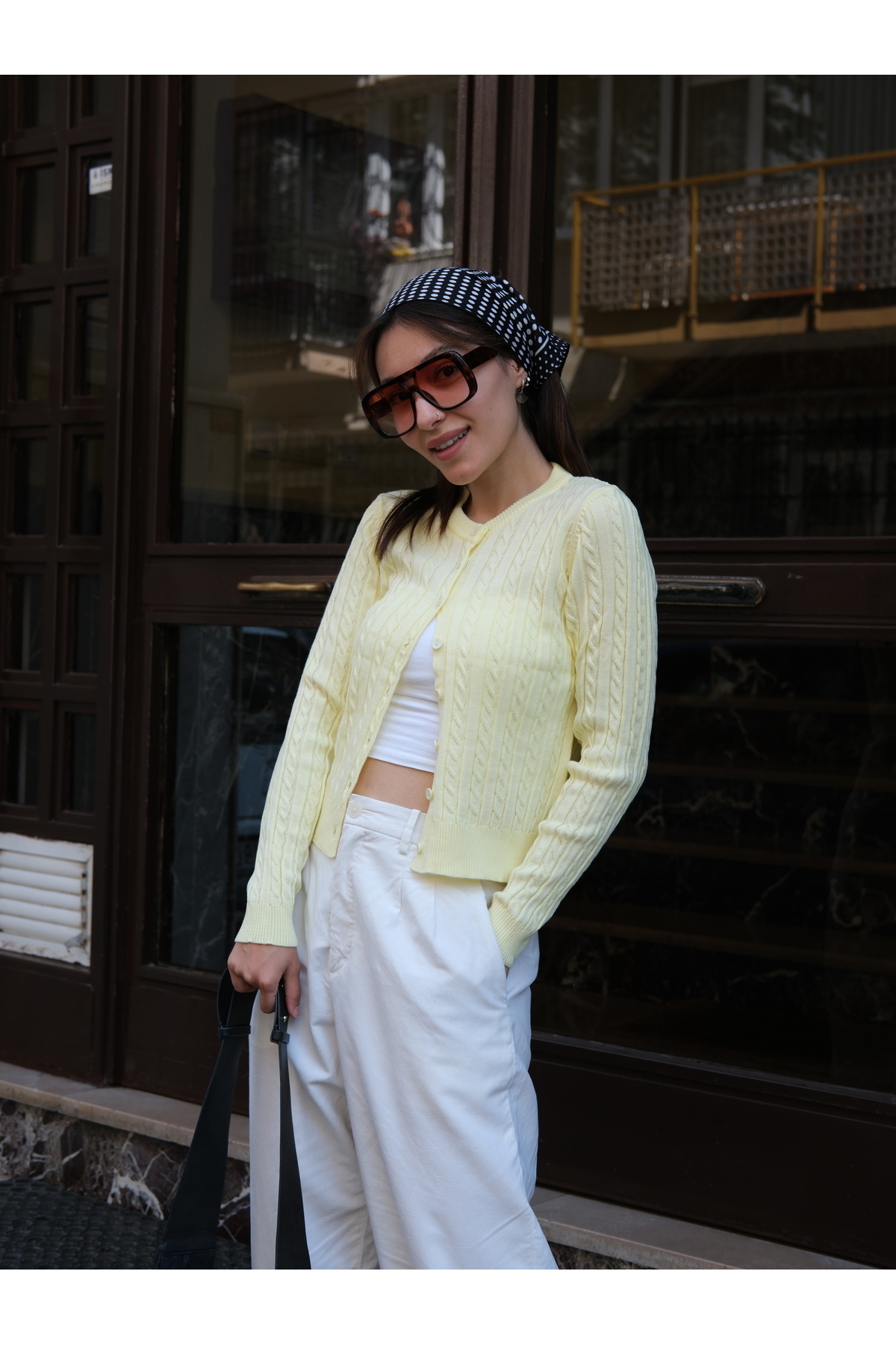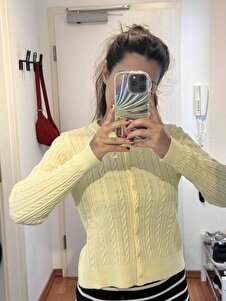 Una Fiaba Sarı Renk Düğmeli Saç Örgü Kadın Triko Hırka Una Fiaba Sarı Renk Düğmeli Saç Örgü Kadın Triko Hırka 252491 XL