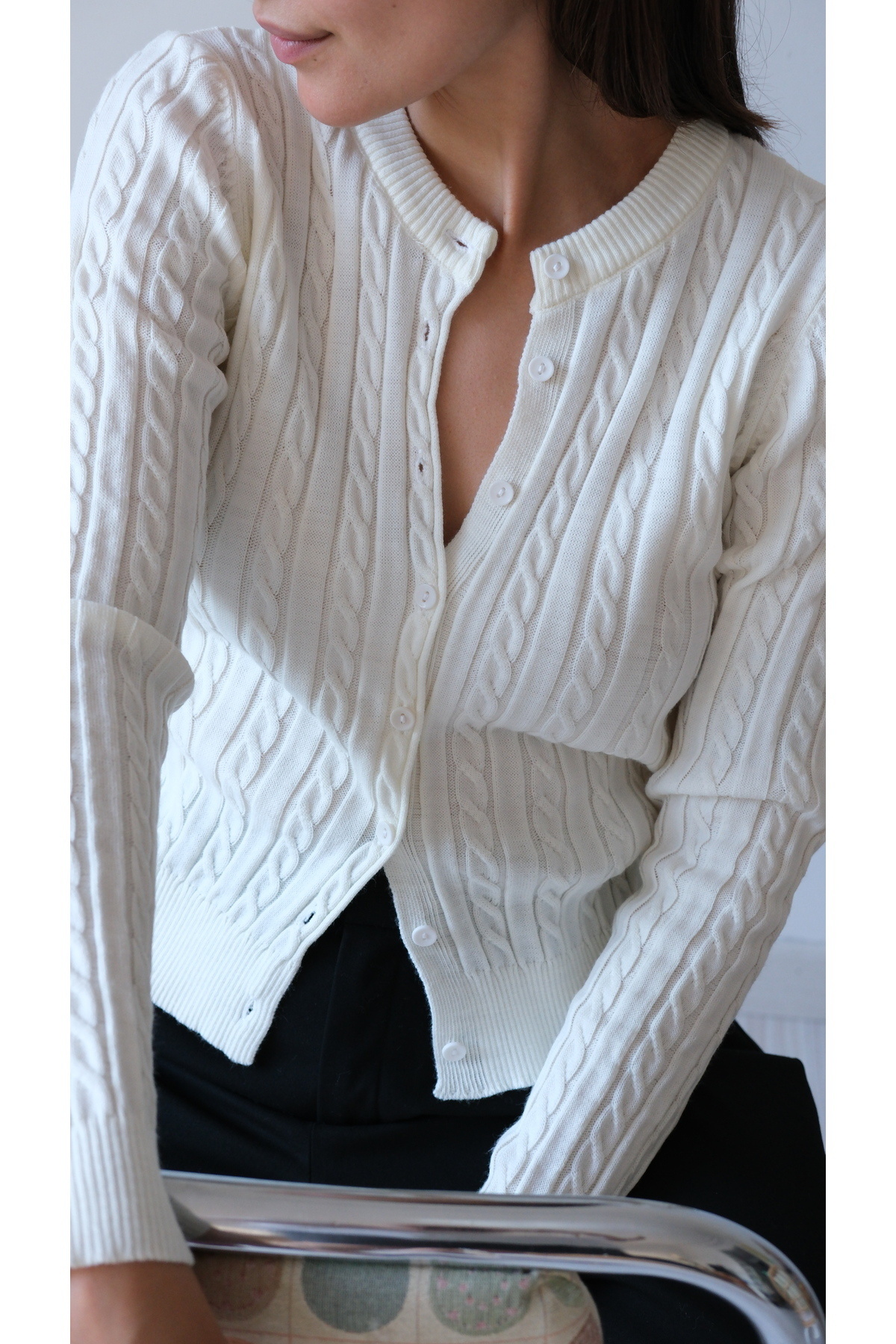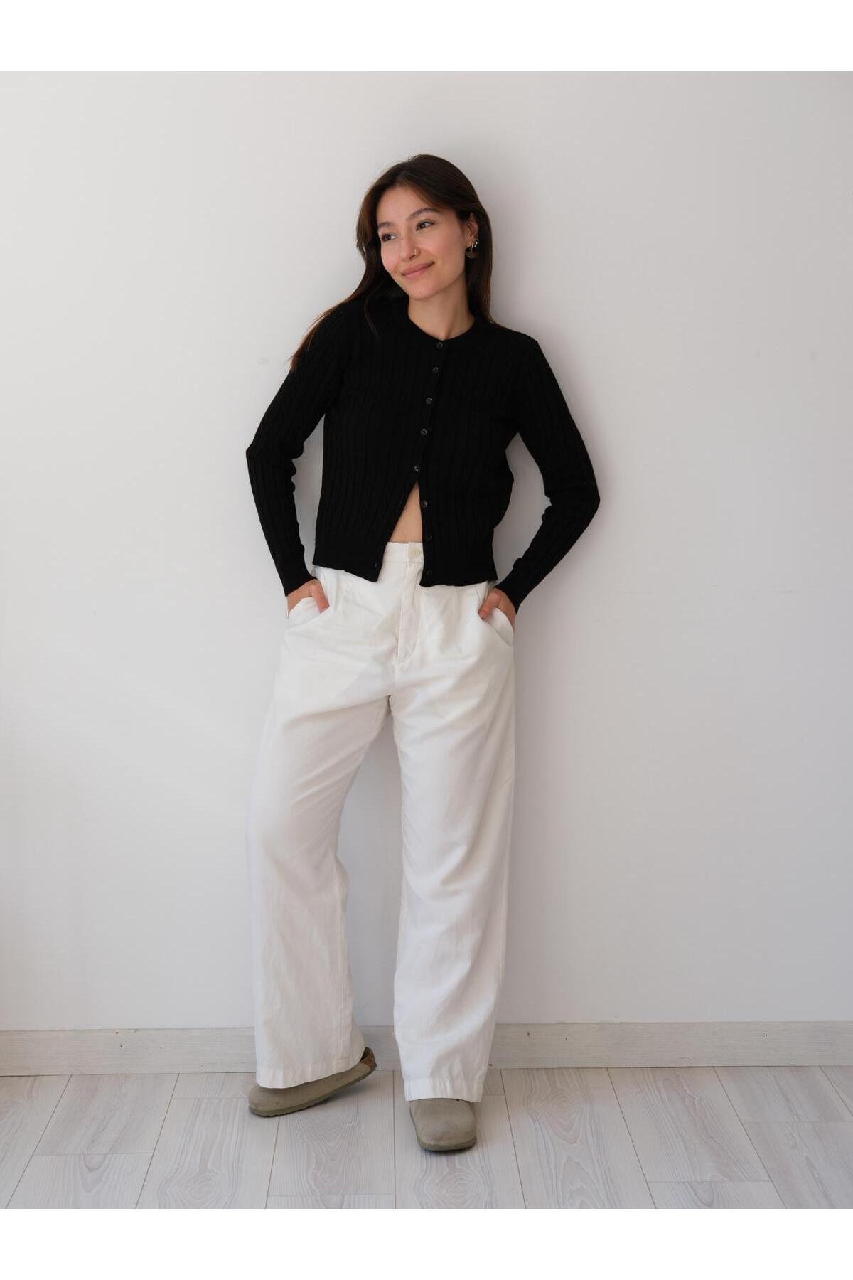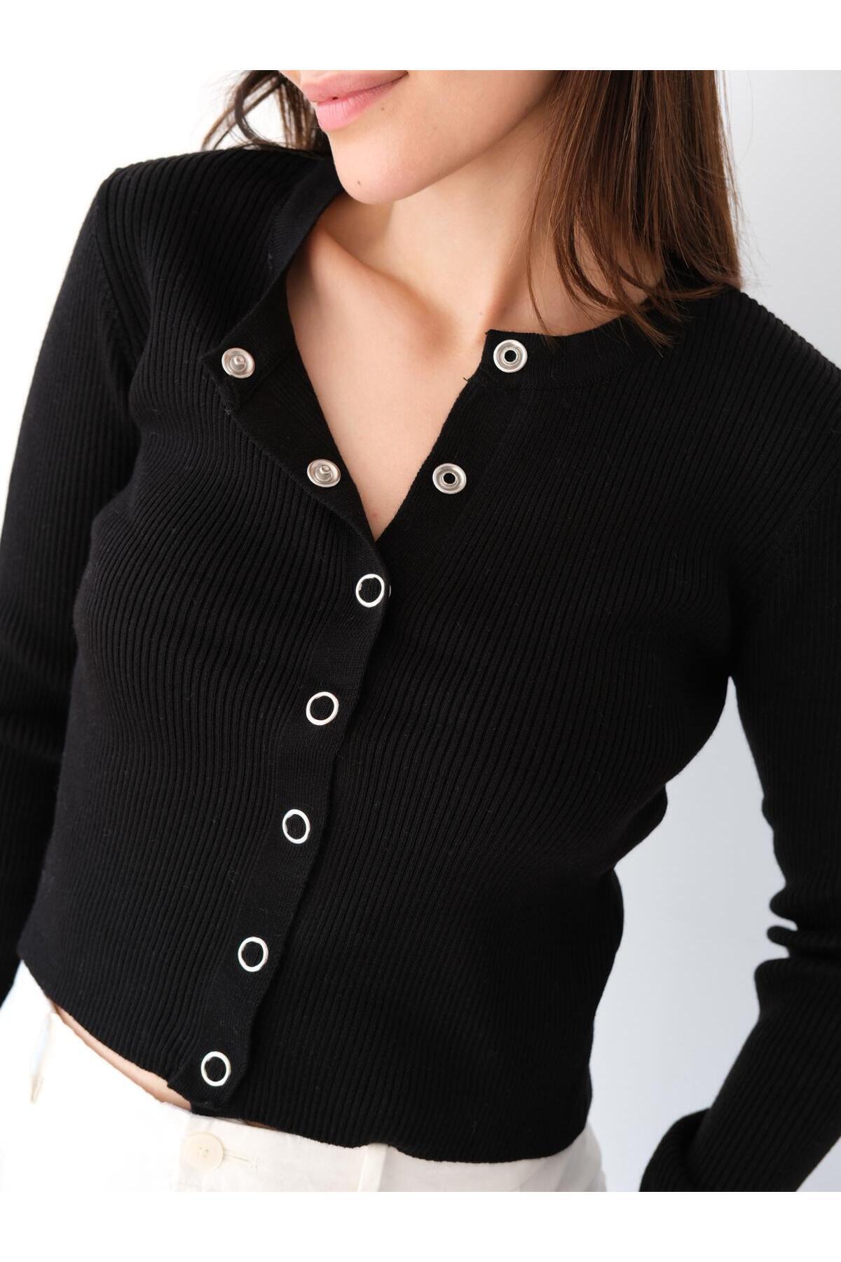Una Fiaba- Siyah Düğmeli Saç Örgü Kadın Triko Hırka Una Fiaba- Siyah Düğmeli Saç Örgü Kadın Triko Hırka 252491 XL