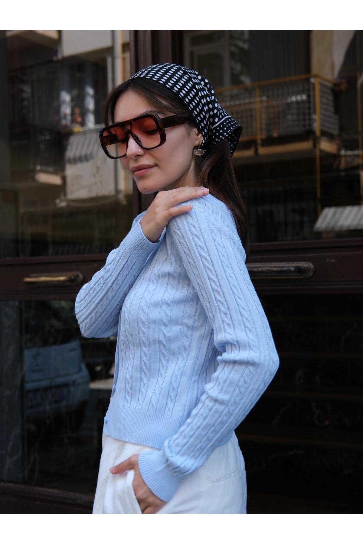 Una Fiaba- Mavi Renk Saç Örgü Düğmeli Kadın Triko Hırka Una Fiaba- Mavi Renk Saç Örgü Düğmeli Kadın Triko Hırka 252491 XL
