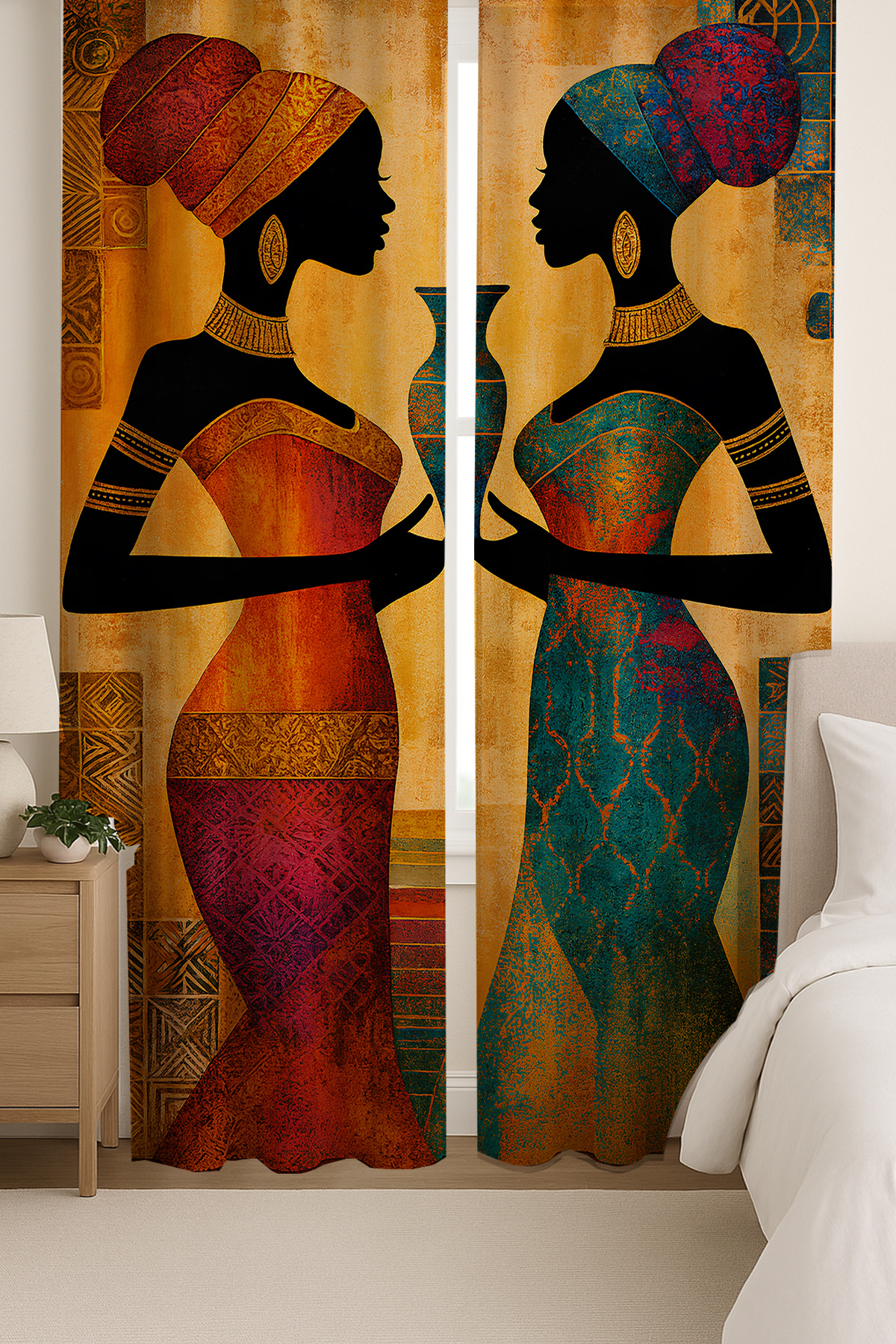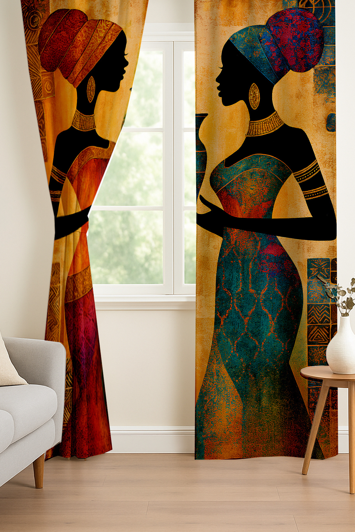 Afrika Silüet Kadın Etnik Desenli Çift Kanatlı Fon Perde Süet Oturma Odası Salon Mutfak 140x260cm Afrika Silüet Kadın Etnik Desenli Çift Kanatlı Fon Perde Süet Oturma Odası Salon Mutfak 140x260cm elsehlafrika 140 x 260