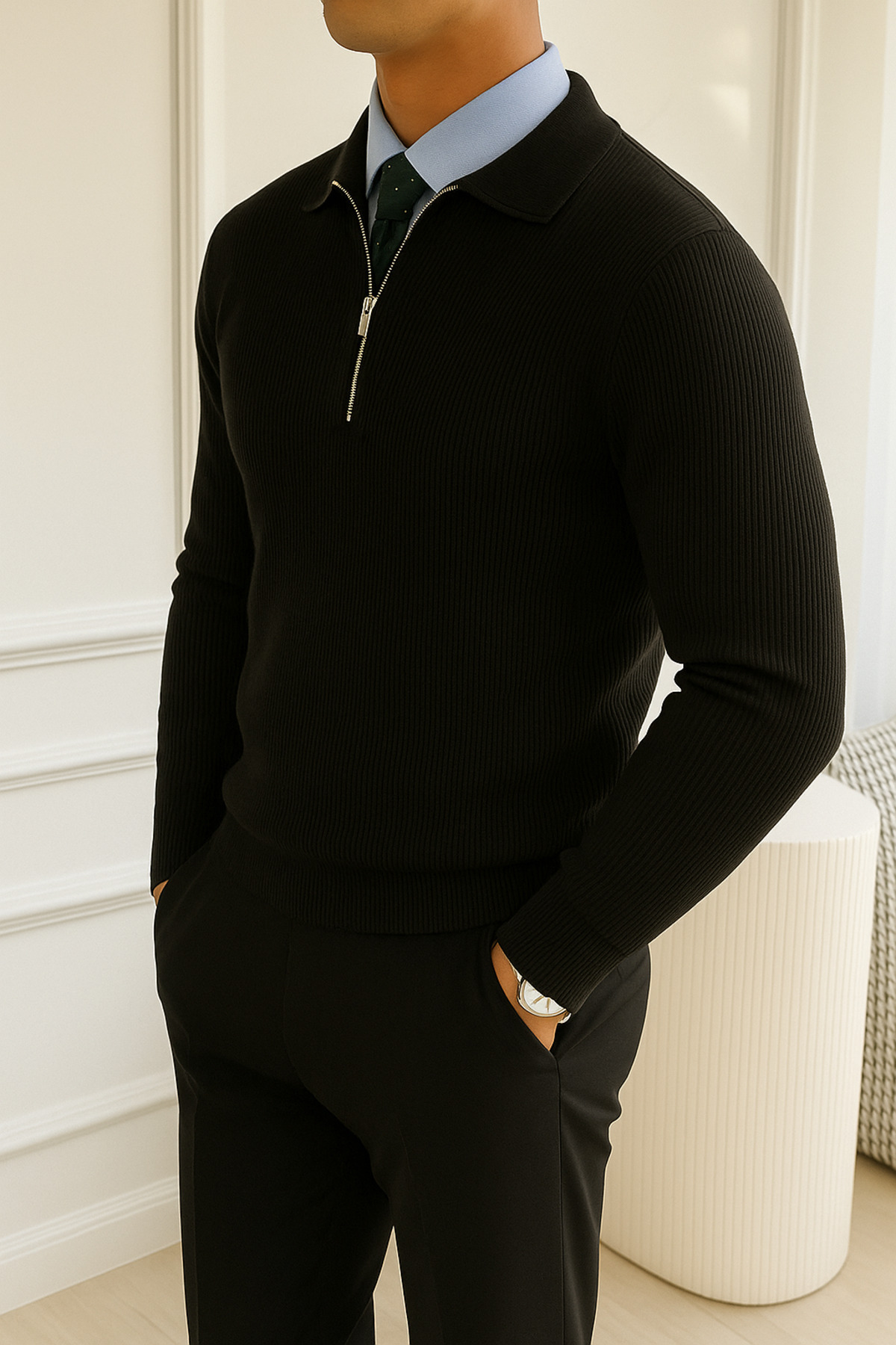 Erkek Polo Yaka Fermuarlı Old Money Kazak Erkek Polo Yaka Fermuarlı Old Money Kazak Premium 2XL