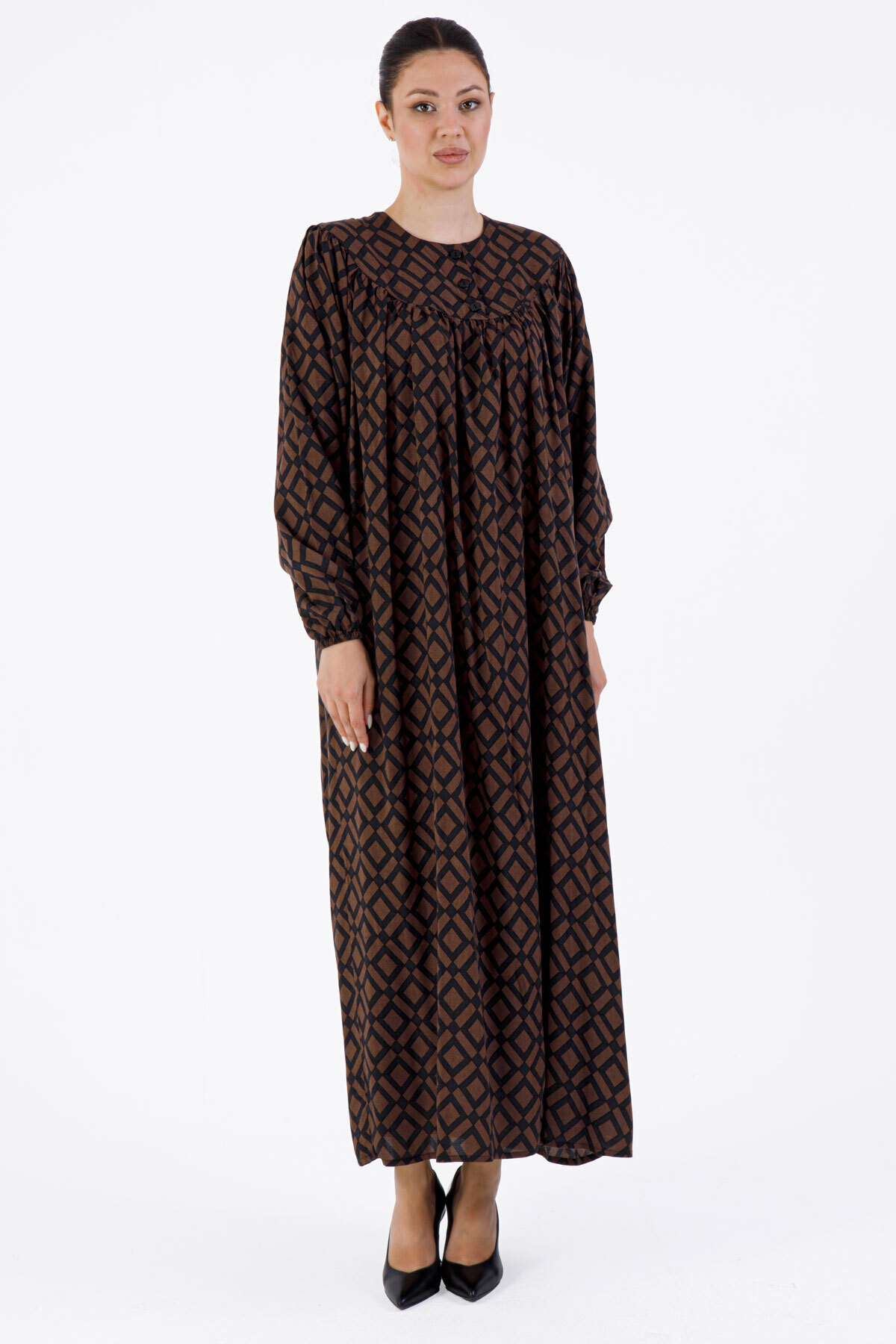 Çiçek Desenli Rahat Kesim Tesettür Anne Elbisesi Çiçek Desenli Rahat Kesim Tesettür Anne Elbisesi M23 54-56