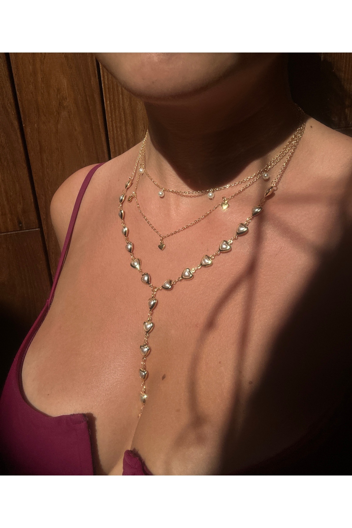 Kalpli İnci Detay Üçlü Kolye Kalpli İnci Detay Üçlü Kolye POP97 تک سایز