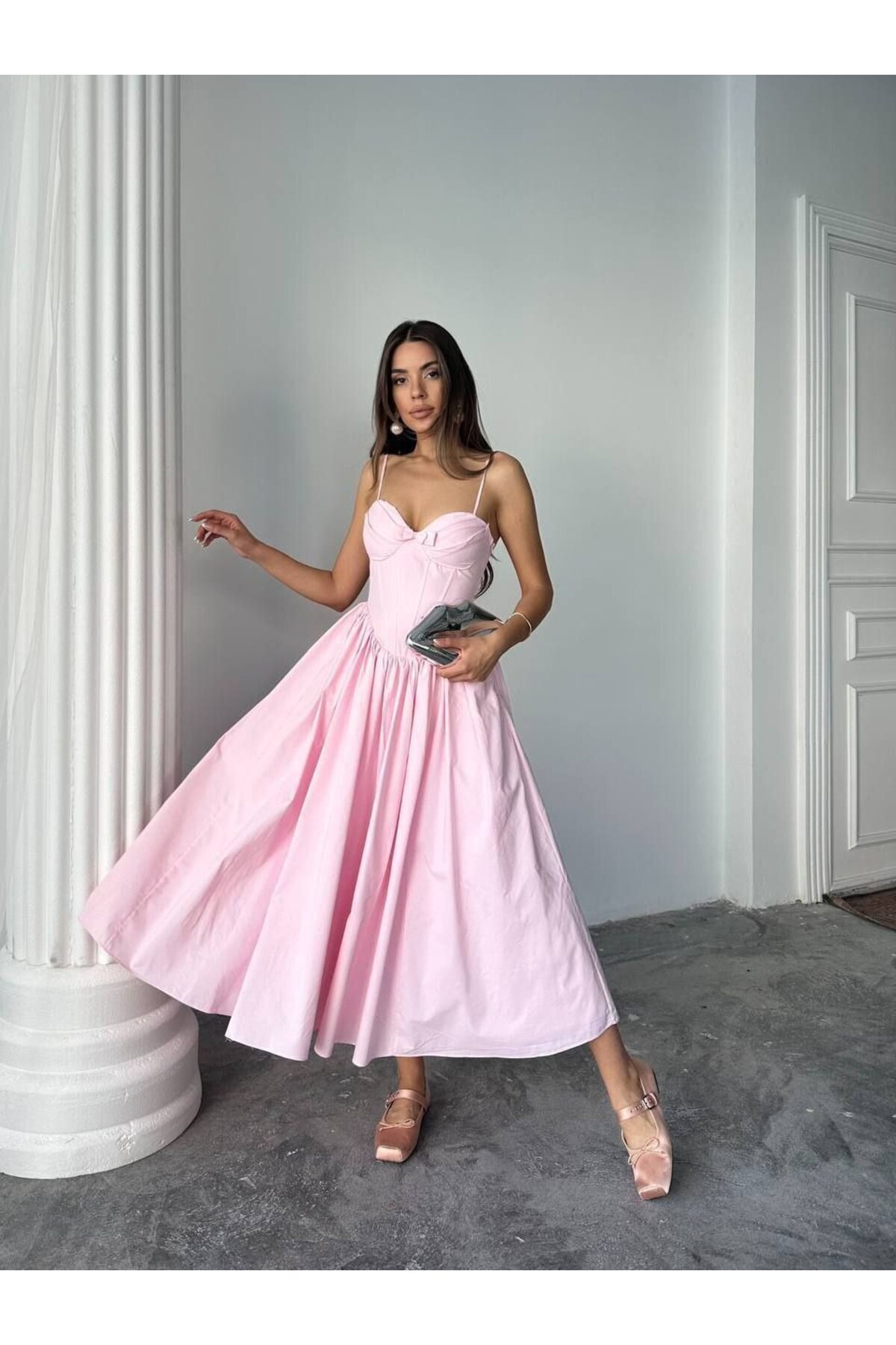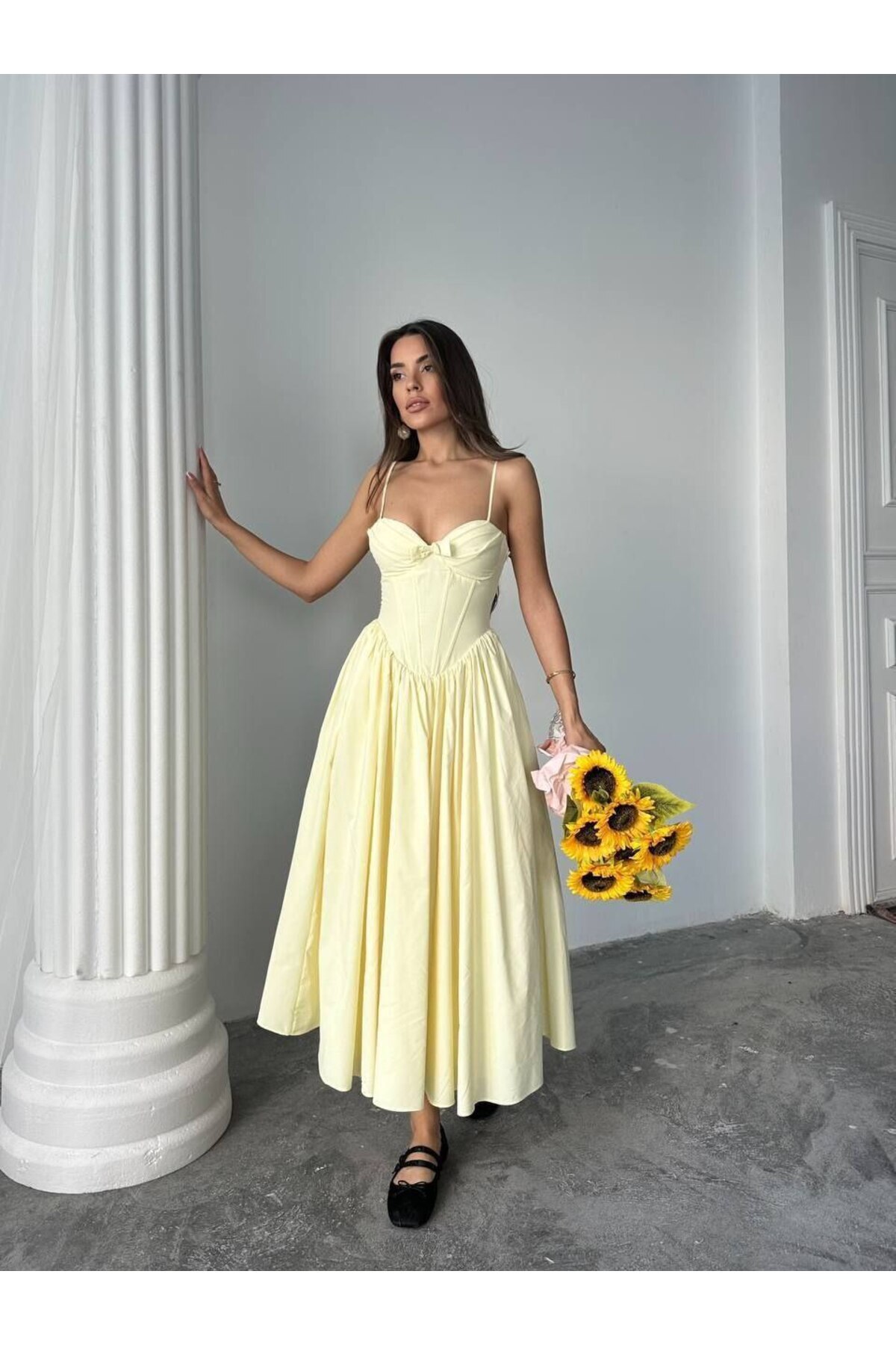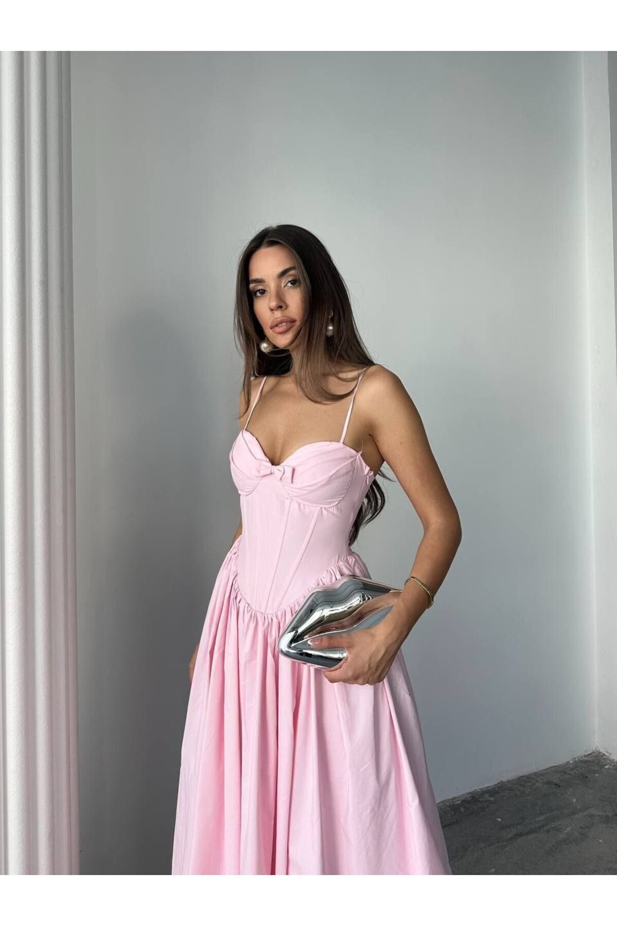 Kadın Kalp Yaka İnce Askılı Fiyonk Detaylı Korse Formlu Uzun Elbise Kadın Kalp Yaka İnce Askılı Fiyonk Detaylı Korse Formlu Uzun Elbise ctn35 L