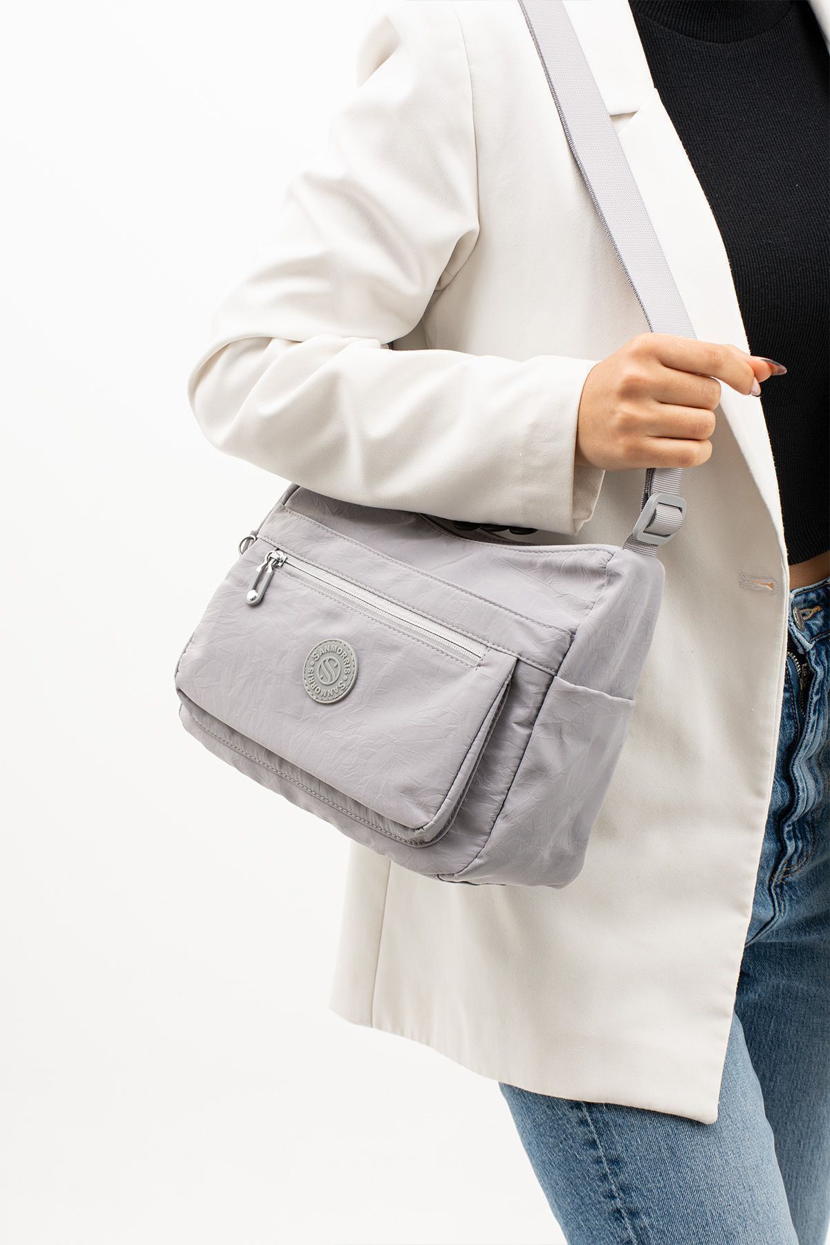 Kadın Çok Gözlü Suya Dayanıklı Krinkıl Kumaş Açık Gri Renkli Çapraz Askılı Omuz Çantası Kadın Çok Gözlü Suya Dayanıklı Krinkıl Kumaş Açık Gri Renkli Çapraz Askılı Omuz Çantası S-4008 تک سایز