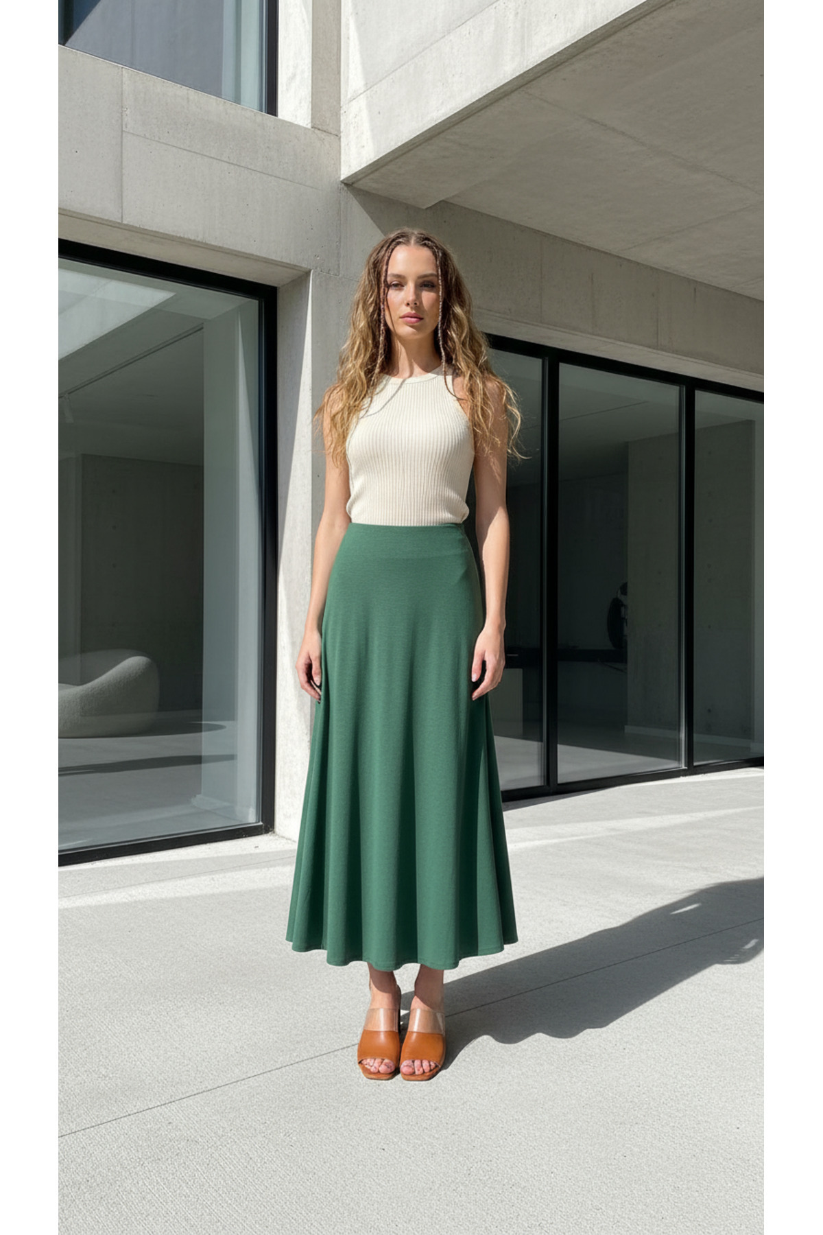 Zümrüt Yeşili Bürümcük Kloş Kadın Uzun Etek Zümrüt Yeşili Bürümcük Kloş Kadın Uzun Etek UKBE500425 42