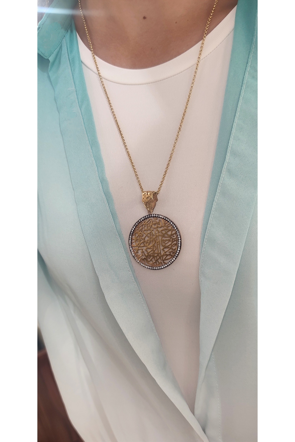 Tılsım Yuvarlak Motif Gümüş Kolye Tılsım Yuvarlak Motif Gümüş Kolye tılsım sarı kolye L